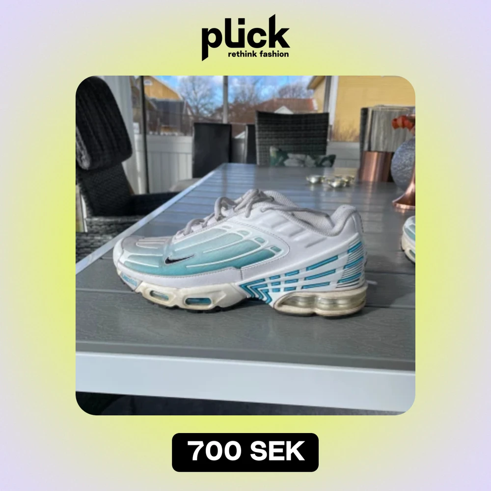 Nike Plus III. Nypris +2000 Köptes för 1800kr när dem var helt nya. Som ni ser på bild är dem använda. Lite ärr på framsidan (skickar gärna bild) och på utsidan så är det lite smuts som ej gick bort med vatten. Inga hål. Strlk 40.5(EU) Pris 700