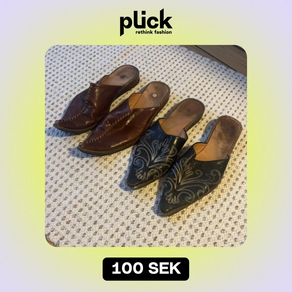 Jag säljer min mammas skor från Tunisien som hon köpte i Sousse. Vi brukar kalla dem för aladdin-skor😅 Ett par svarta, ett par bruna. Båda i äkta läder. Fint skick på ovansidan men något sliten sula. 100kr per par. Skriv vid frågor!