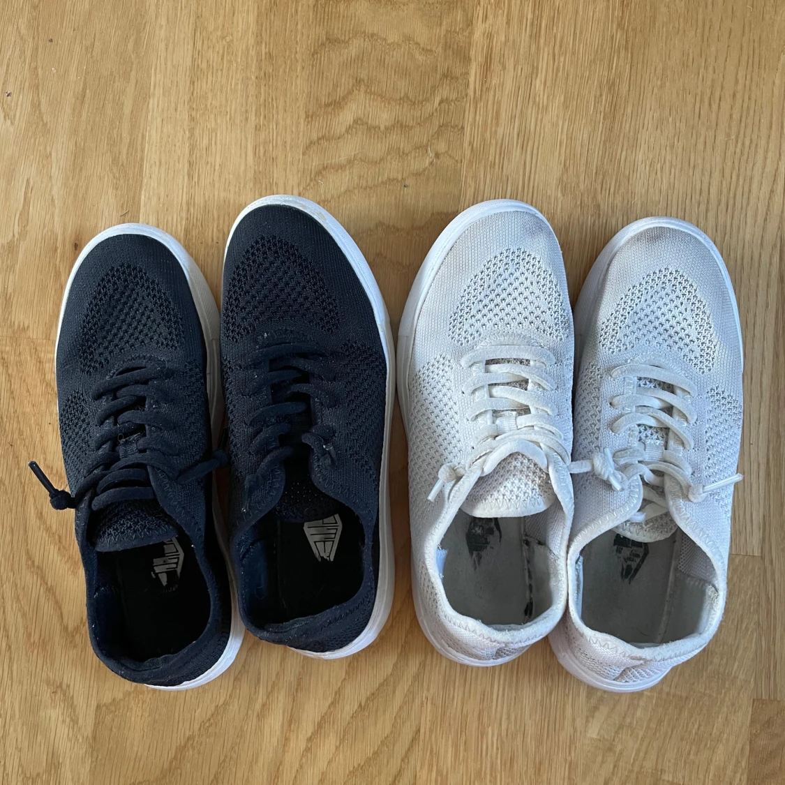 Två par fritidsskor storlek 38, ett par svarta och ett par vita.