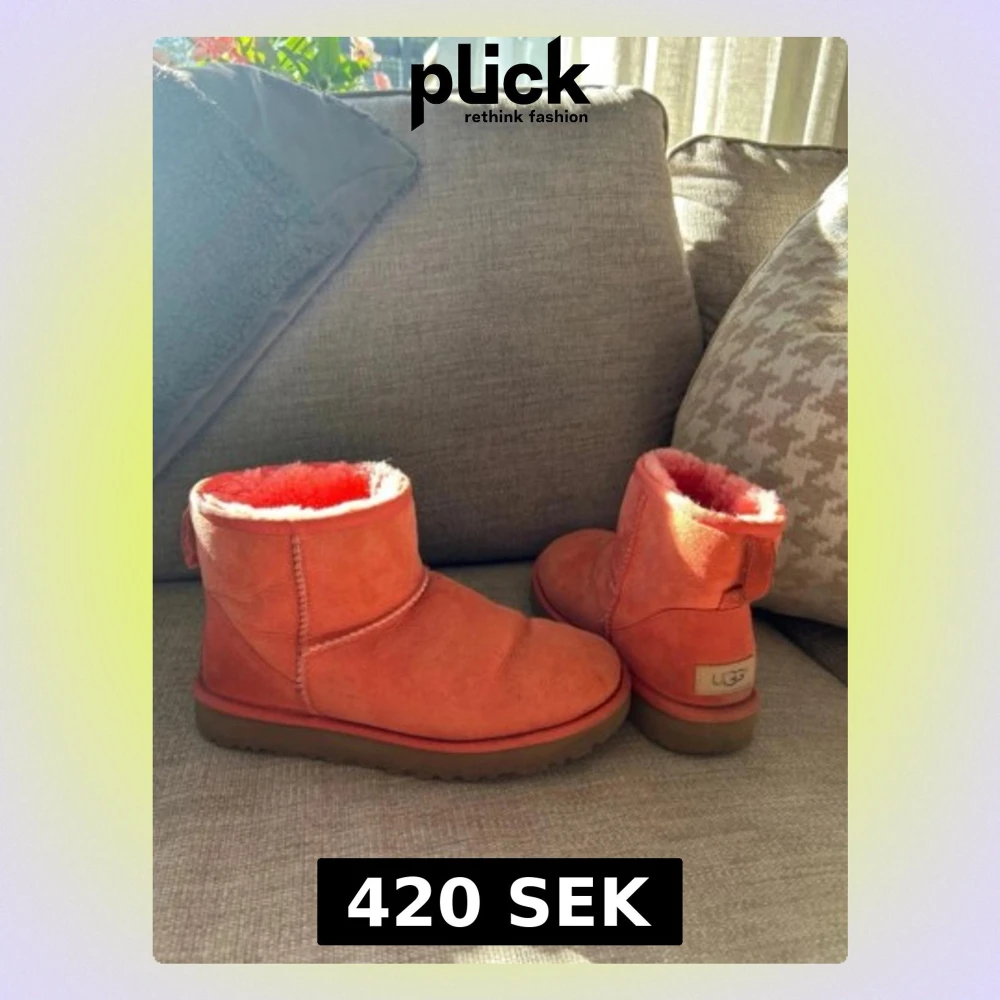 Säljer ett par corall UGG boots med mjukt pälsfoder och rund tå. Skorna har en platt sula i gummi och är tillverkade i mocka. Perfekta för kalla dagar och har UGG-logga baktill på hälen. Fodret är fluffigt och matchar den orangea färgen.