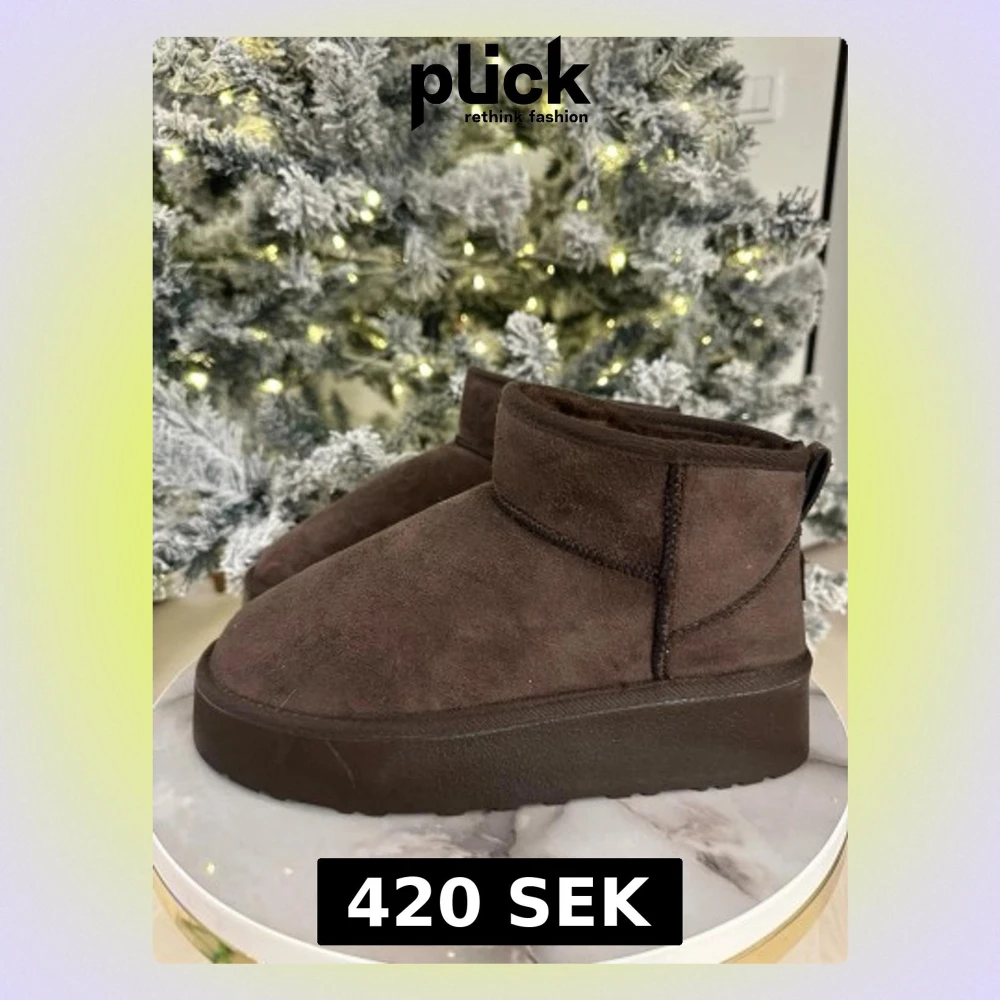 Mysiga bruna UGG boots med rund tå och platt sula. Skorna är tillverkade i mjuk mocka med fluffigt foder på insidan för extra värme. Klassisk UGG-logga bak och praktisk flik för att enkelt ta på sig skorna. Perfekta för kalla dagar.