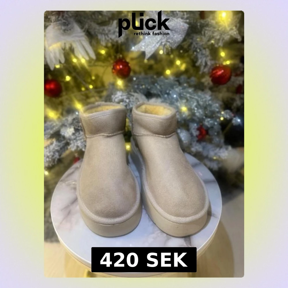 Säljer ett par beige UGG boots med mjukt fårskinnsfoder och mocka på utsidan. Skorna har rund tå, platt sula och klassisk UGG-logga bak. Perfekta för kalla dagar och riktigt mysiga att ha på sig.