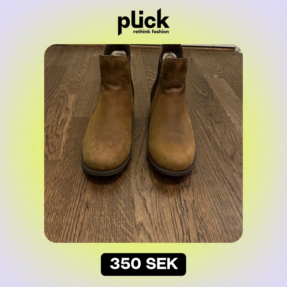 Säljer ett par snygga bruna boots från UGG i skinn. De har en klassisk design med elastiska paneler på sidorna för enkel på- och avtagning. Perfekta för höst och vinter med en robust sula som ger bra grepp. Använda men i bra skick, redo för nya äventyr!