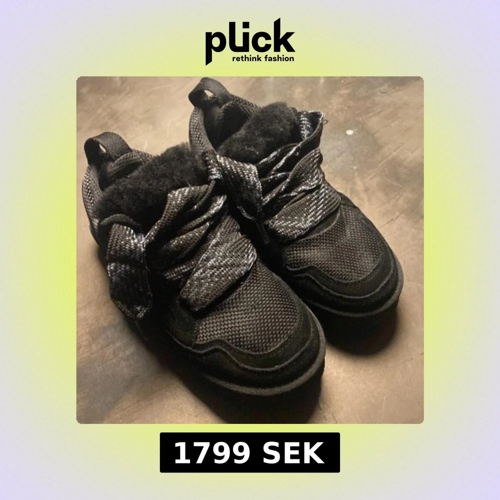 Säljer ett par svarta sneakers från UGG med fluffig päls på insidan och grova snören. Skorna har en sportig look med mesh och mockadetaljer, samt en rejäl platt sula. Perfekta för dig som vill ha både stil och komfort under kyligare dagar. Nypris gick för 3 tusen kronor