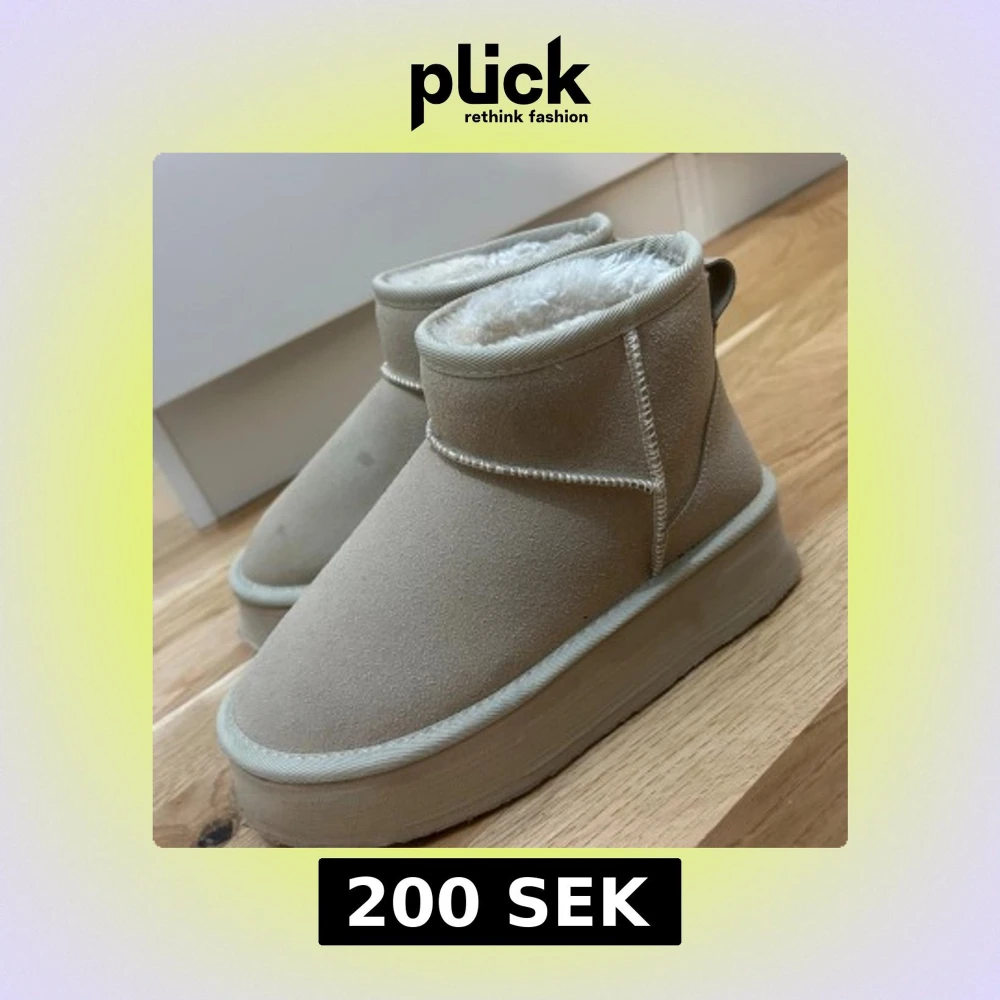 Säljer ett par beige boots med mjukt fuskpälsfoder och platt sula. I godskick och synliga defekter.