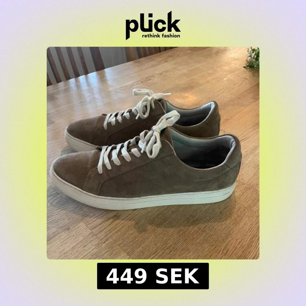 Snygga beige/bruna sneakers från Vagabond i mocka med vita snören. Storlek 43, väldigt fint skick. Nypris ca 1300kr, mitt pris 449kr.