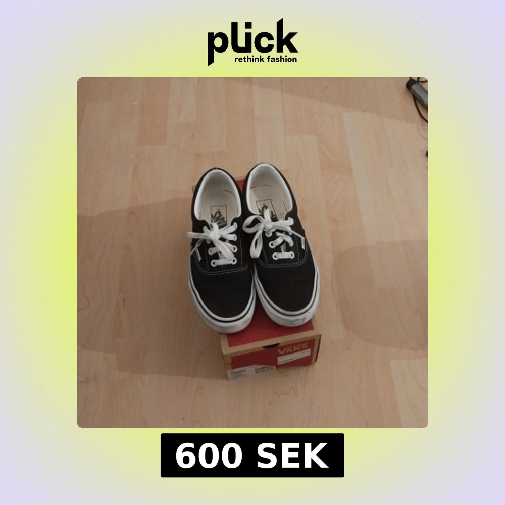 Klassiska svarta Vans sneakers med vit sula och vita snören. Låg modell med rund tå och tydliga vita sömmar. Perfekta för en avslappnad stil och passar till det mesta. Säljes med originalkartong. Och är alldrig använda seljer dessa efter dom att jag vill byta dom mot ett par rock skor köpte dom för 700kr