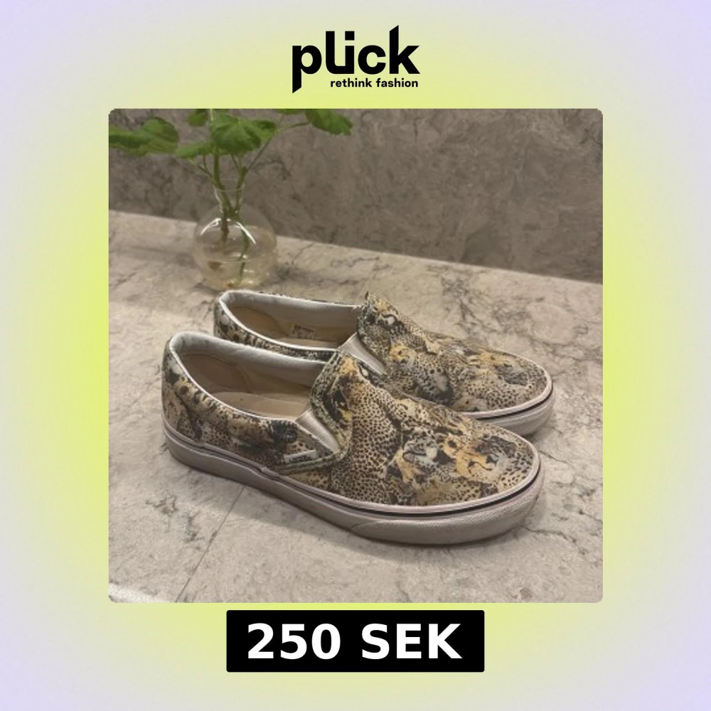 Snygga slip-on sneakers från Vans med ett coolt leopardmönster. Skorna har en bekväm passform och är perfekta för en avslappnad stil. De har en vit sula som kontrasterar snyggt mot det djärva mönstret.