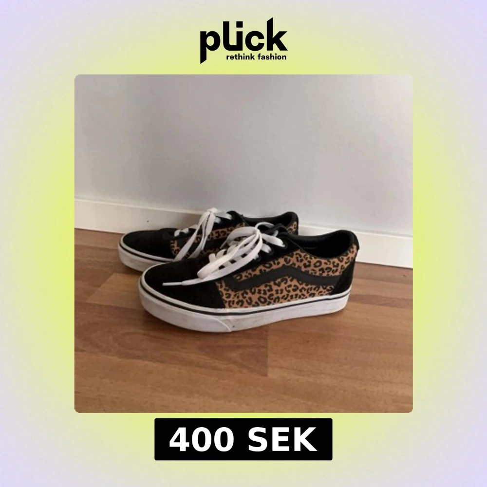 Snygga Vans sneakers i svart med leopardmönstrade detaljer. Skorna har använts kanske 3 ggr och är i nyskick, endast lite smuts på sulan men de tvättar jag såklart bort innan jag skickar. Lådan till skorna har jag använt när jag slog in eb present så den är inte kvar, men jag skickar skorna i en annan skokartong. Priset är diskuterar bart!
