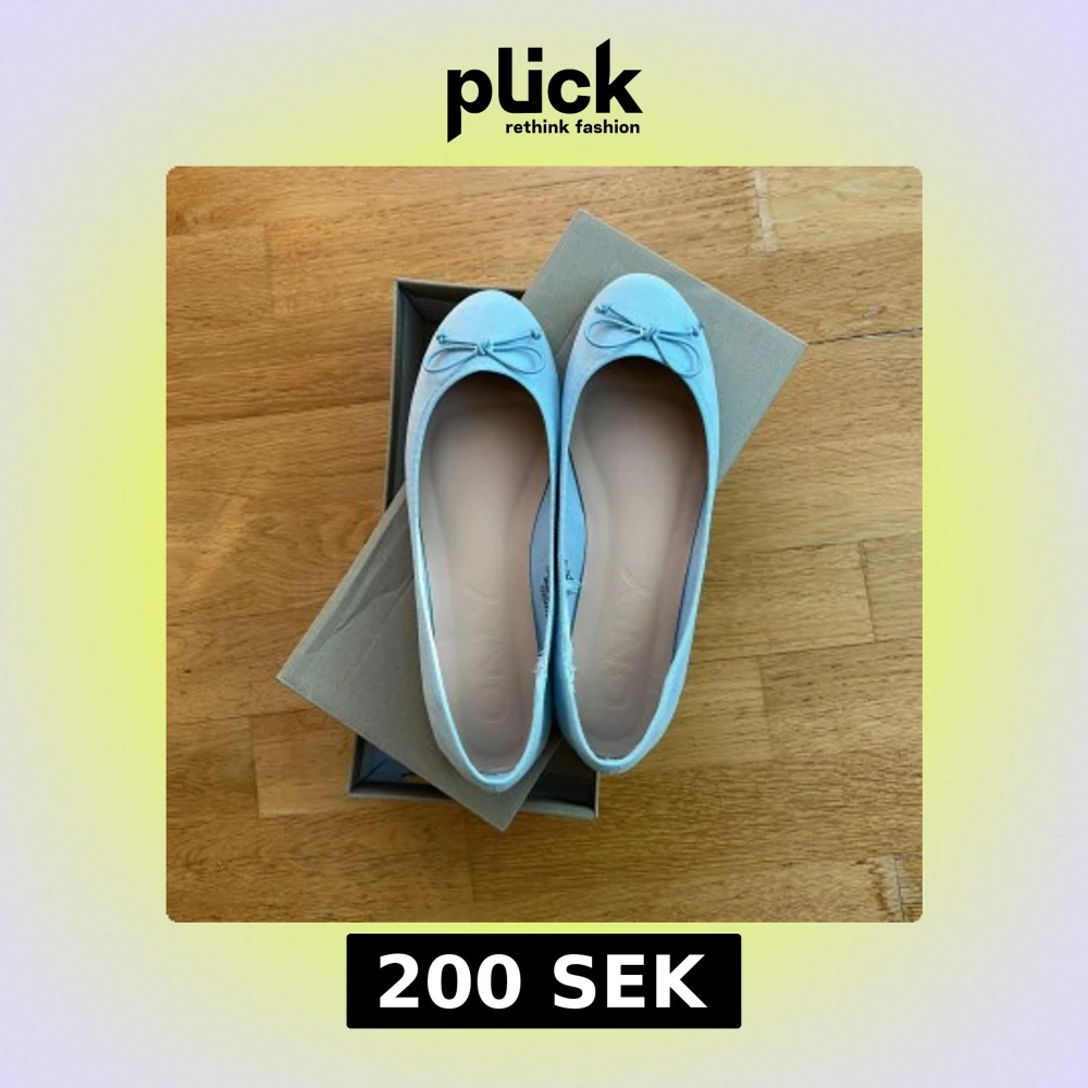 Säljer ett par ljusblå ballerinaskor från ONLY med söt rosettdetalj framtill. Skorna har rund tå och platt sula, perfekta för en stilren och enkel look. Jätte söta och passar perfekt till sommaren och våren 🩵🩵