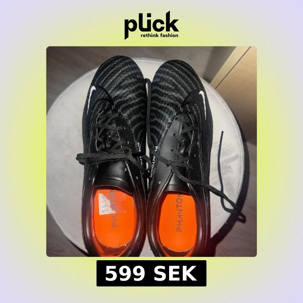 Nike Phantom fotbollsskor - Snygga Nike Phantom fotbollsskor i svart och rosa med snörning. Skorna har ett väldigt bra skick förutom en liten defekt på vänsra sula som man ser på bild 2, men det är inget märkvärdigt! Köpte skorna för ca 1500kr. Hör av er vid frågor och funderingar😃