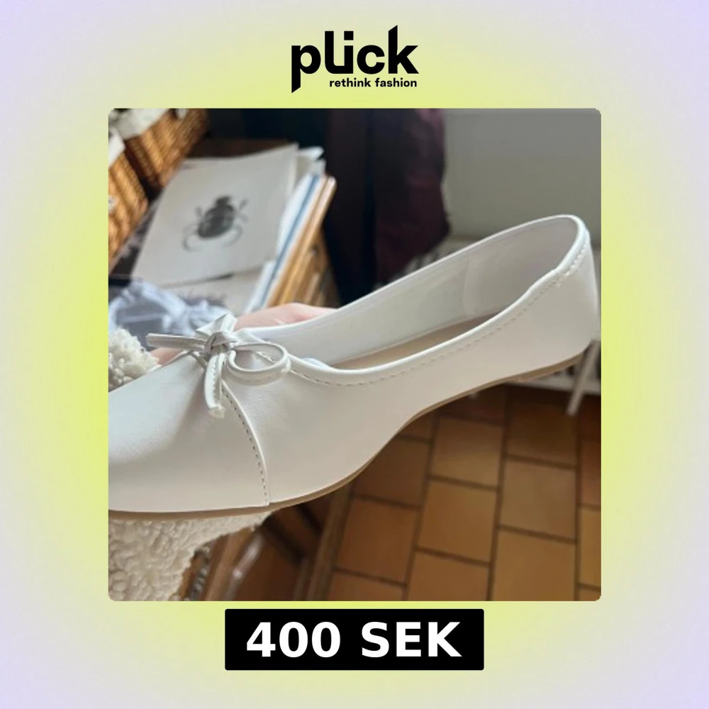 Vita ballerinaskor, endast testade & förpackningen är kvar. Säljer då dom va lite små för mig tyvärr. Perfekt till studenten och sommaren