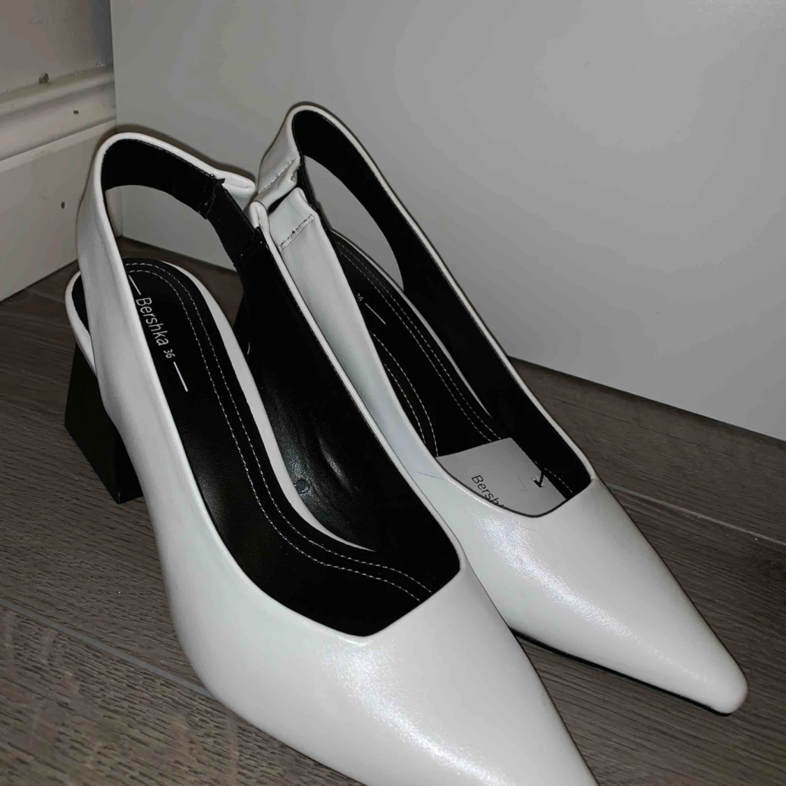 Vita Låga klackskor från bershka, helt oanvända med lappen kvar. Säljes på grund av att dom är för stora på mig. För mer info skicka pm