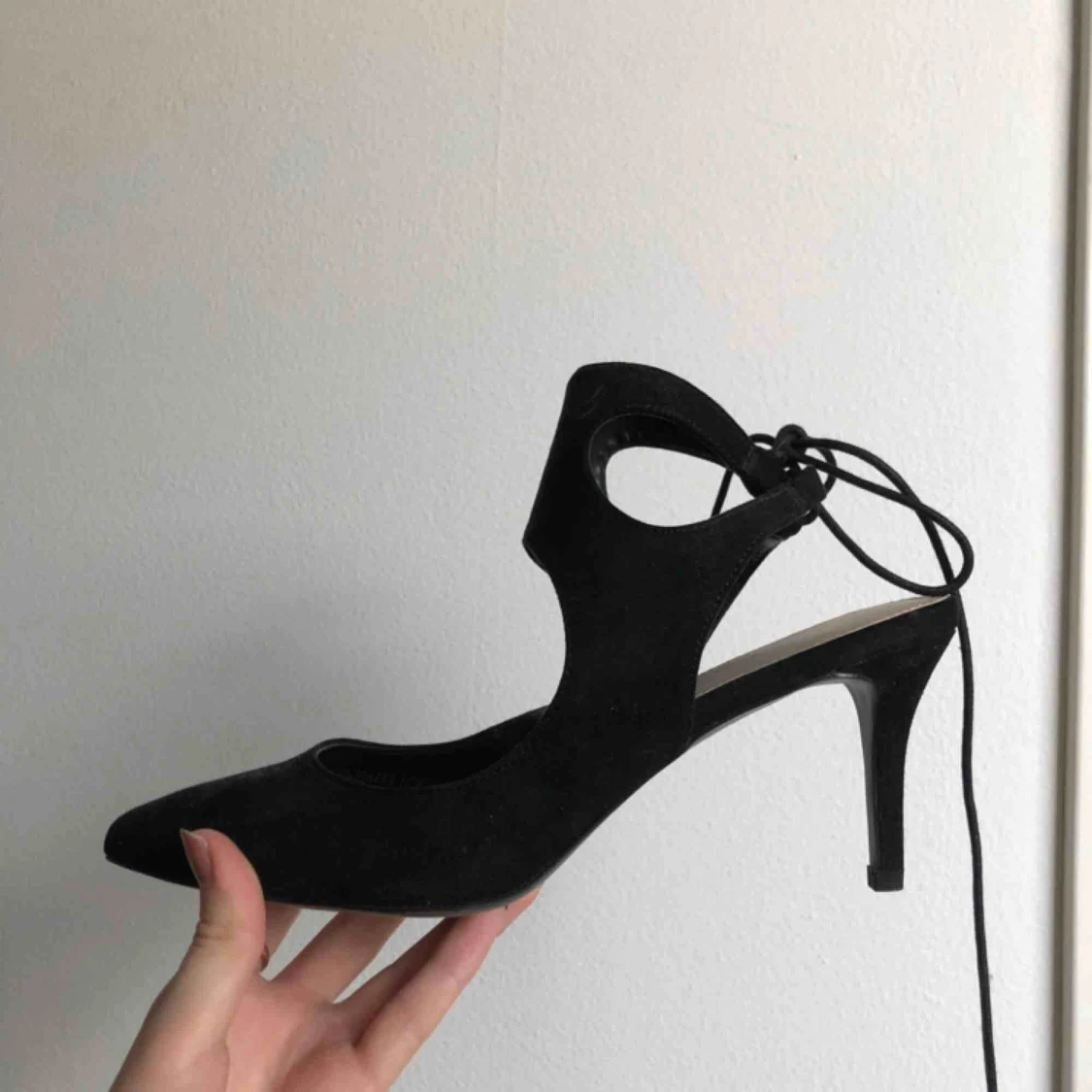 Svarta klackskor med snören storlek 40, klackar ca 7,5cm. Knappt använda, mycket gott skick :) kan skickas eller mötas upp i Stockholm.