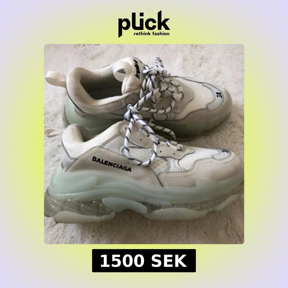 Superfina äkta Ba.lenciaga Triple S clear sole sneakers, storlek 38. Endast använda ett fåtal gånger, mycket bra skick! Nypris ca 11.00 kr. Säljer för 1500 kr!!