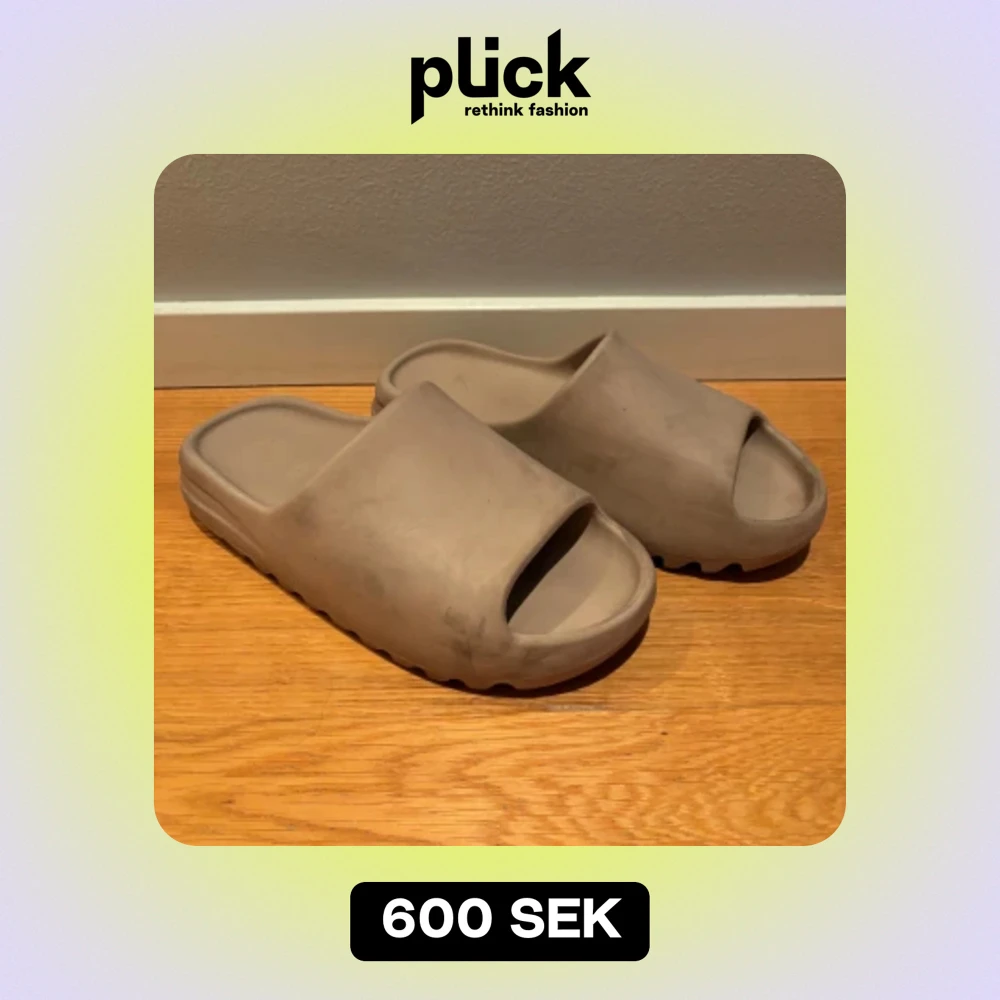 Yeezy slides i storlek 41, skulle säga att de passar mindre. Köpta på GOAT för några år sedan, skicket är där efter, 6.5/10. Nypris ca 2500kr