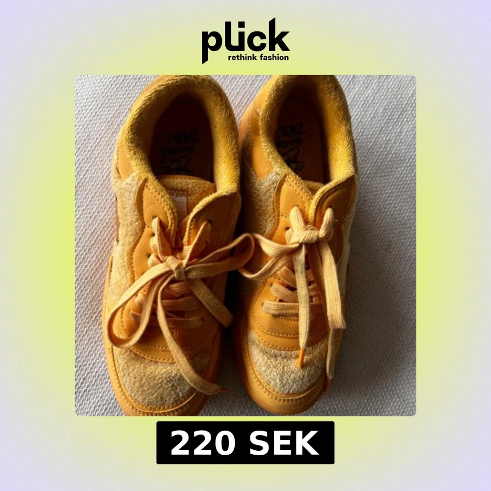 Säljer ett par coola gula sneakers från Zara med teddy-bear print på innersulan. Skorna har snörning, mjuka teddy-detaljer på sidorna och ovandelen, samt platt sula. Perfekta för dig som vill sticka ut med färg och mjuka material.