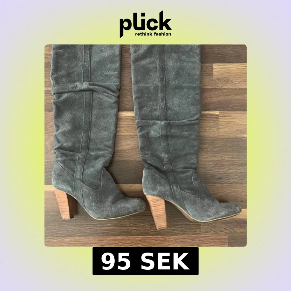 Snygga höga stövlar i grå med rund tå och träfärgad klack. Stövlarna har en slouchy passform och är perfekta för att lyfta din outfit. De har en klassisk design utan dragkedja och en mjuk yta som ger en cool vibe.
