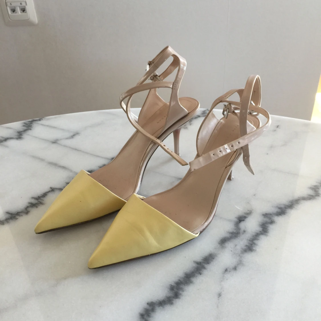 Ett par klackar från Zara! Ljusgula lite lägre klack på dessa! Använda tre ggr! Köparen står för frakt på 50kr