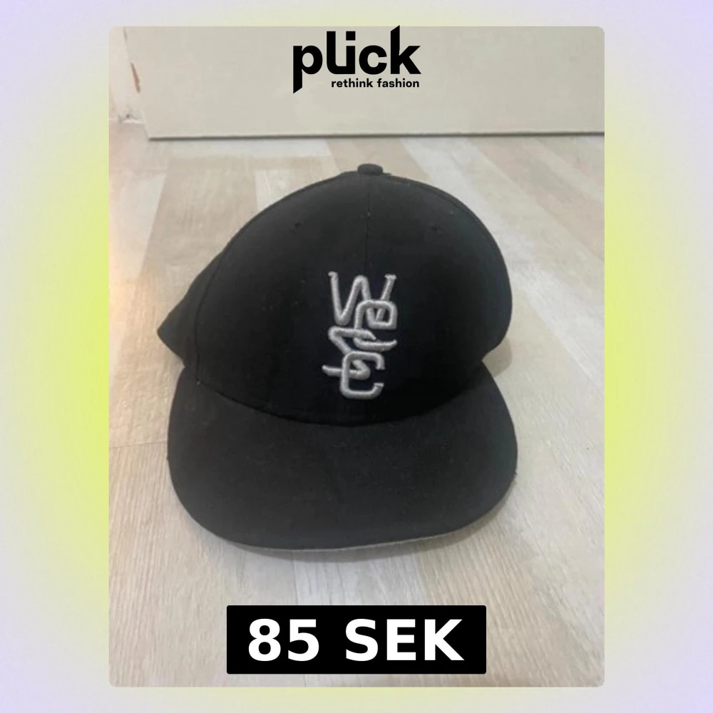 Säljer en svart keps från WeSC New Era med böjd skärm och broderad vit logga framtill. Klassisk modell med ventilation på ovansidan och diskret svart logga på sidan. Tillverkad i slitstarkt tyg, perfekt för en streetwear-look.