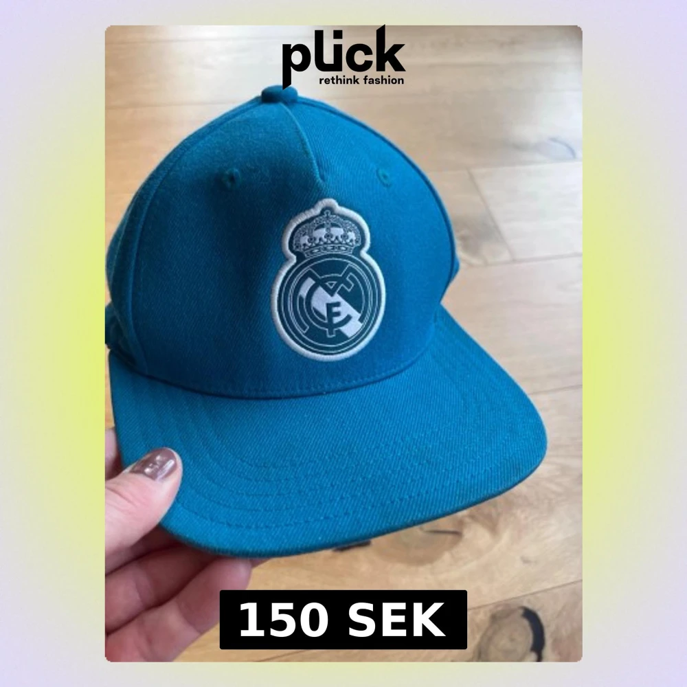 Snygg blå keps med Real Madrid-logga broderad framtill. Klassisk modell med böjd skärm och justerbar baksida. Perfekt för dig som vill visa vilket lag du hejar på. Materialet känns slitstarkt och kepsen har en sportig vibe.