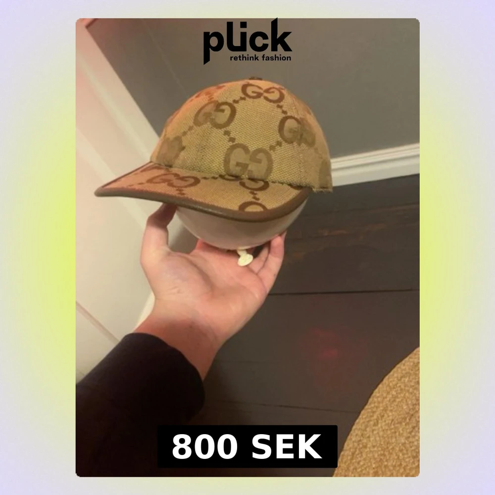 Säljer en beige keps från Gucci med det klassiska GG-monogrammet över hela kepsen. Kepsen har böjd skärm, justerbart band bak och är tillverkad i canvasmaterial med bruna detaljer. Perfekt för dig som vill ha en ikonisk och trendig accessoar.
