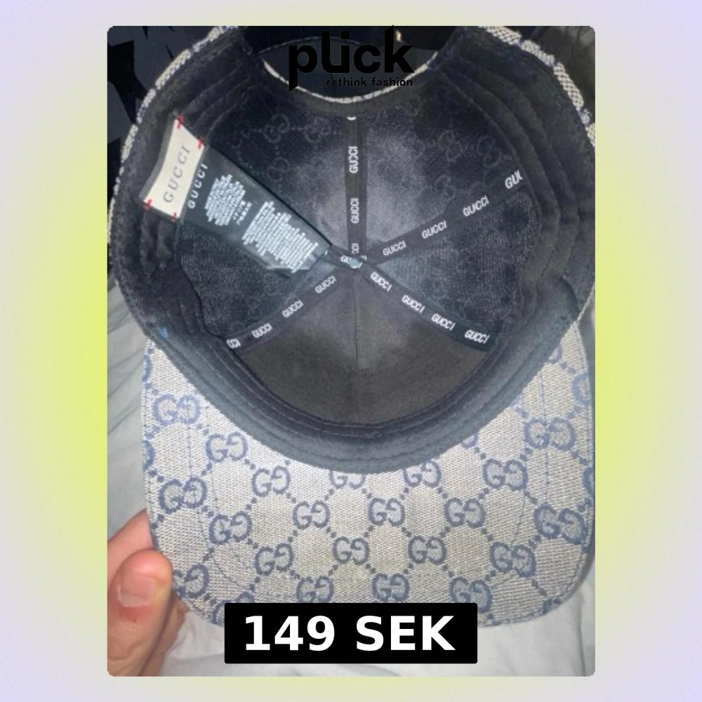 Säljer en snygg Gucci keps i beige med blått GG-monogram över hela kepsen. Klassisk böjd skärm och ikoniskt rött och blått band på sidan. Tillverkad i canvasmaterial med detaljer i svart tyg på insidan. Perfekt för dig som vill ha en exklusiv och trendig look.