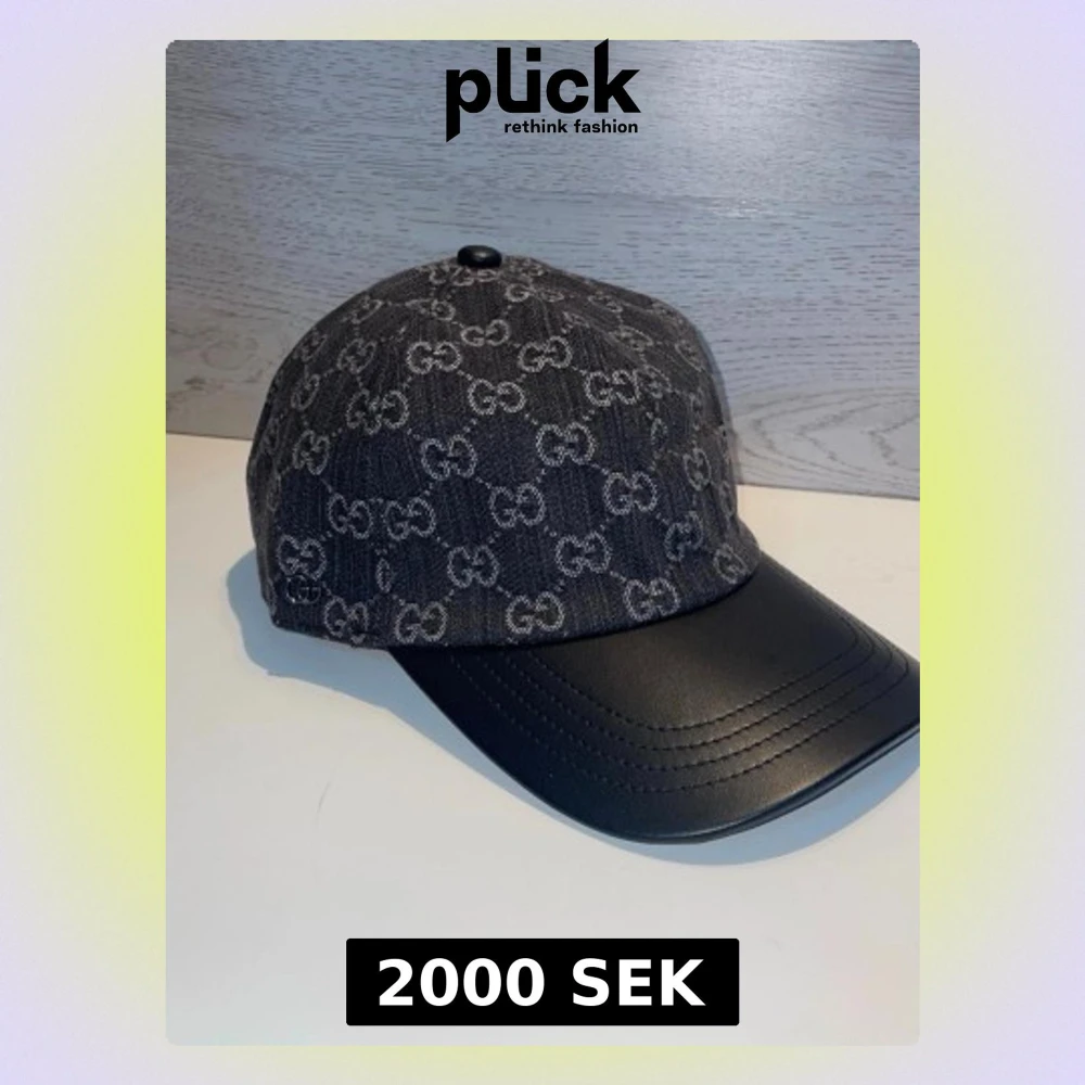 Säljer en svart keps från Gucci med klassiskt GG-monogram i grått över hela tyget. Skärmen är i svart läderimitation som ger en lyxig känsla. Perfekt accessoar för dig som vill ha en trendig och exklusiv look.