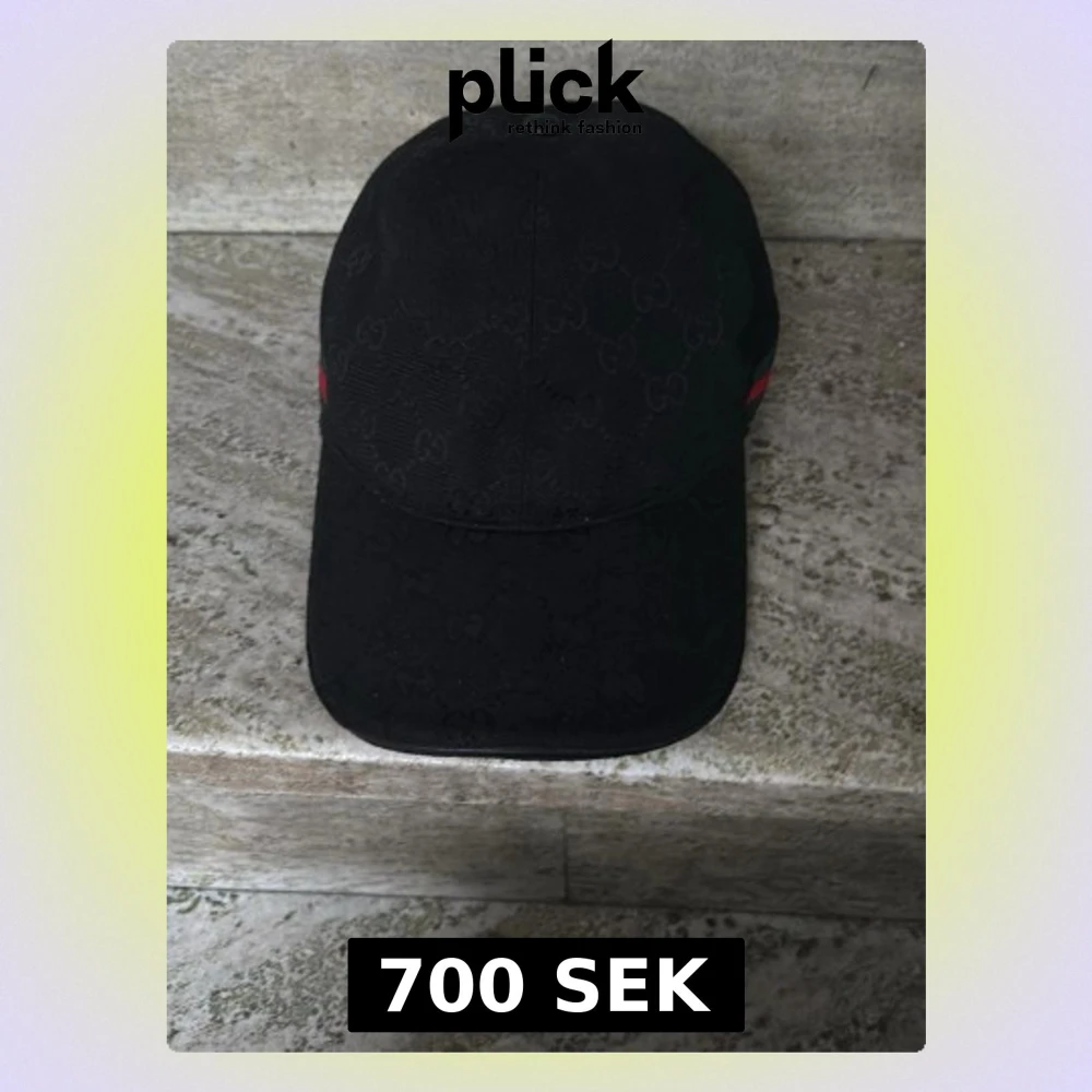 Snygg svart keps från Gucci med diskret GG-monogram över hela tyget och klassiska röda och gröna ränder på sidorna. Justerbar rem baktill för perfekt passform. Kepsen är tillverkad i ett slitstarkt tyg som känns lyxigt och trendigt.