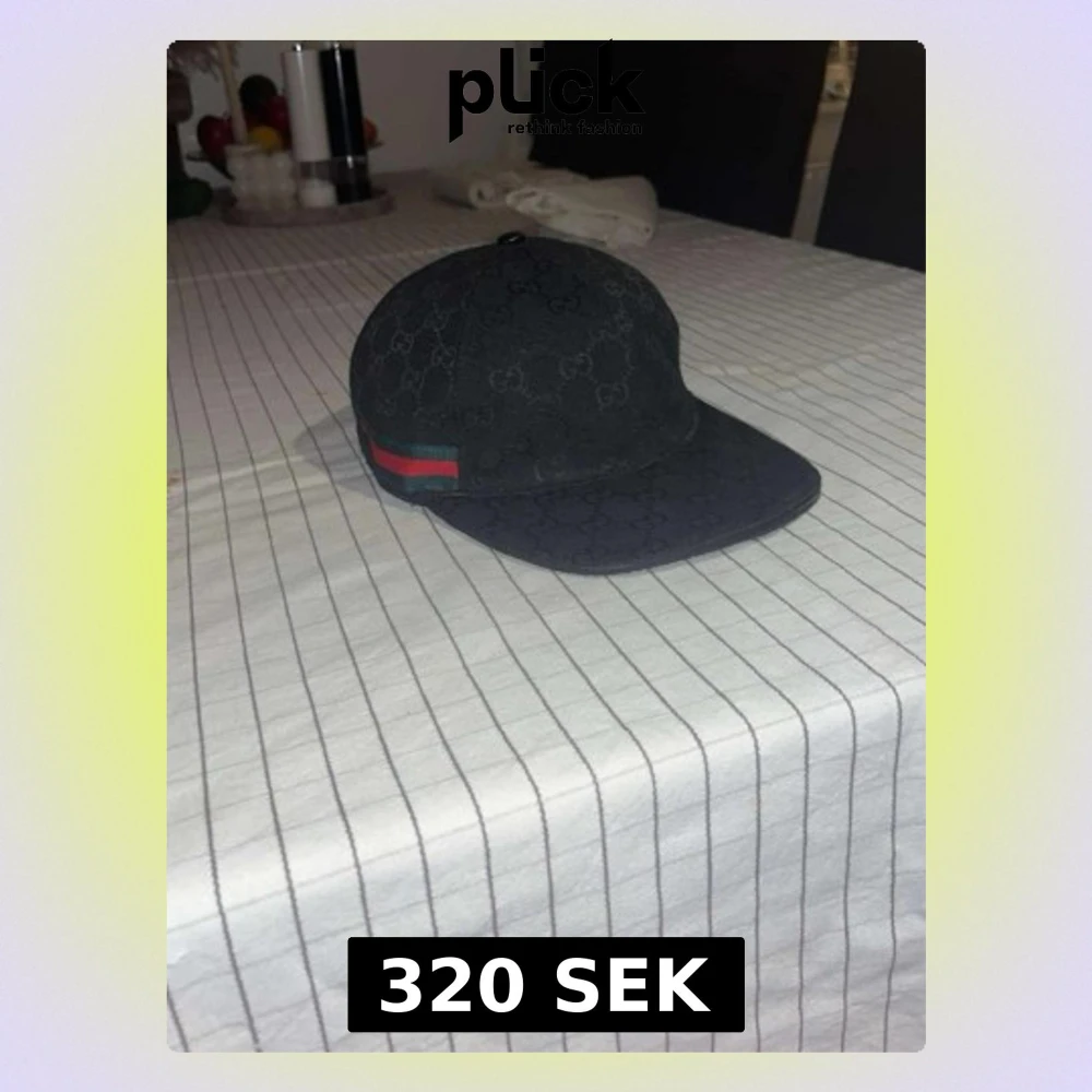 Snygg svart keps från keps monogram över hela kepsen. På sidorna finns de ikoniska gröna och röda ränderna. Kepsen har böjd skärm och justerbar passform. Perfekt för dig som vill ha en stilren accessoar med lyxig känsla.