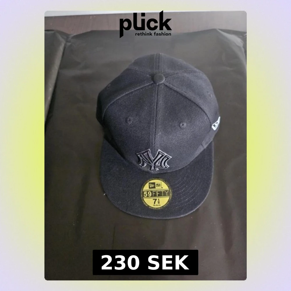 Snygg svart keps från New Era, modell 59FIFTY, med broderad New York Yankees-logga framtill. Klassisk flat peak och strukturerad passform. Kepsen är i bomullsmaterial och har märkets logga på sidan. Perfekt för dig som gillar streetwear.