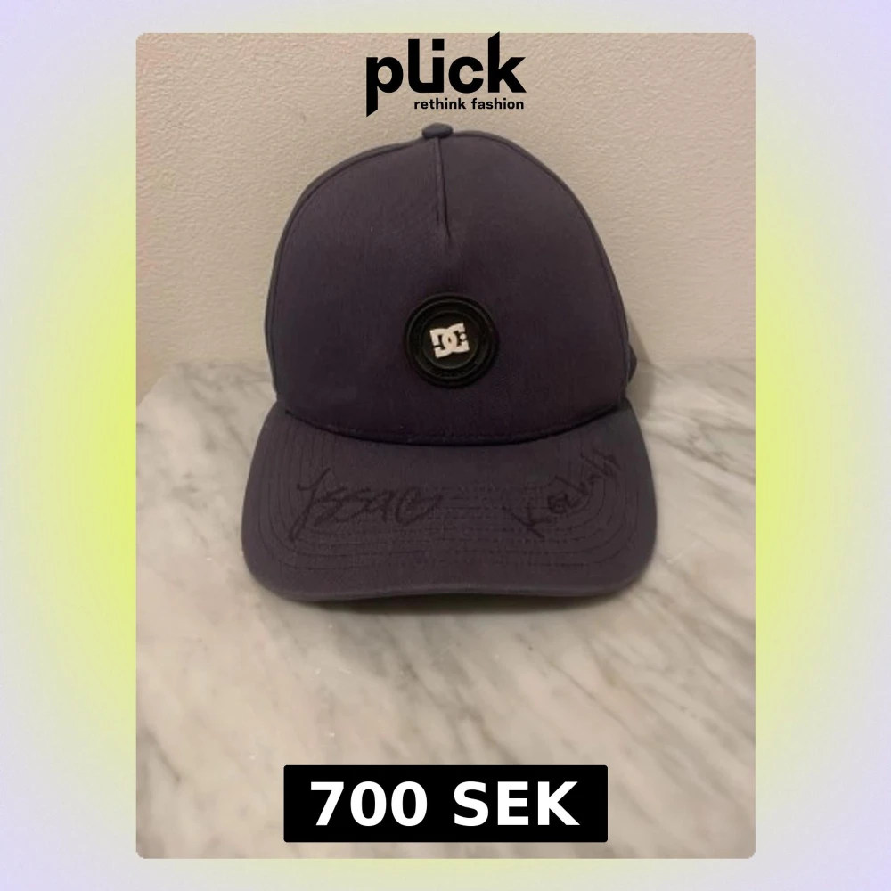Säljer en svart keps från DC med rund logotyp framtill. Kepsen har böjd skärm och autografer från keebabb och Isabelle på framsidan. Insidan av skärmen har ett holografiskt klistermärke med texten 'Jag är i min prime'. Klassisk och stilren modell i tyg.