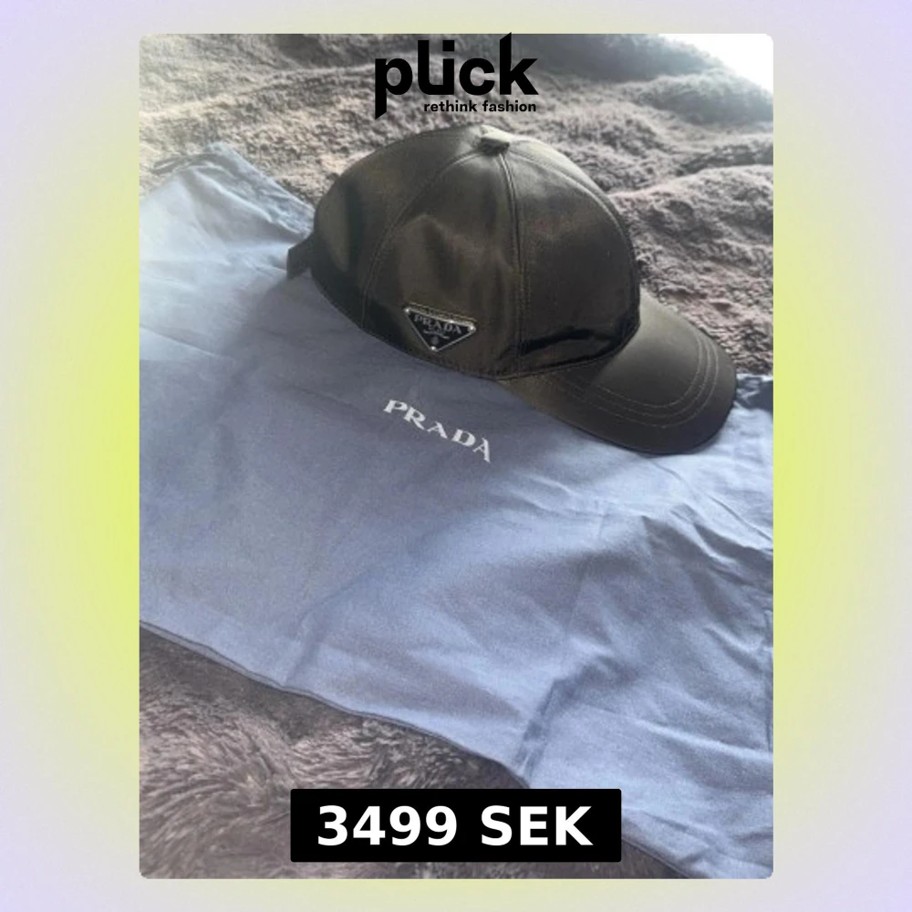 Snygg svart keps från Prada i glansigt nylonmaterial med klassisk böjd skärm och justerbar rem bak. På sidan sitter Pradas ikoniska metalltriangel med logga. Perfekt accessoar för en trendig och sportig look.