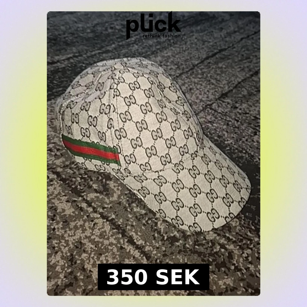 Snygg keps i beige med klassiskt GG-monogram över hela kepsen. Har en grön och röd rand på sidan och justerbart spänne bak med. Tillverkad i canvasmaterial som ger en exklusiv känsla.