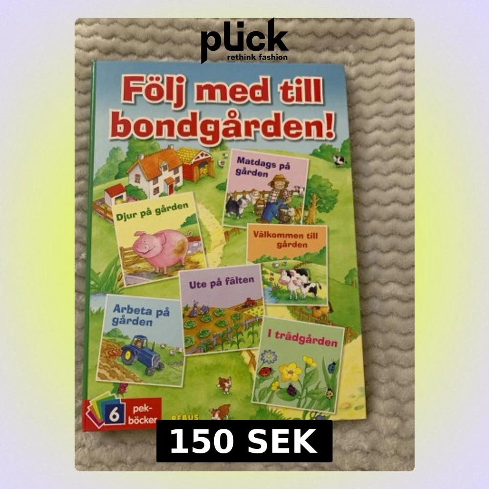 Upptäck livet på bondgården med sex färgglada pekböcker! Lär dig om djur, arbete, trädgård och mat på gården genom rim och fina bilder. Perfekt för unga som vill utforska natur och lantliv på ett roligt sätt.
