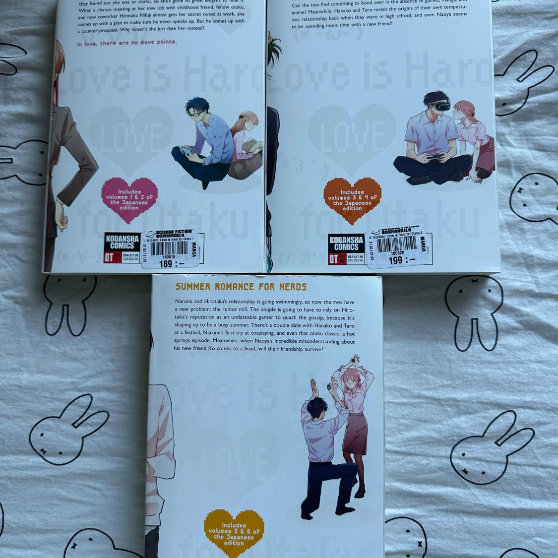 books manga wotakoi: love is hard for otaku volume 1,2,3 50sek each (vol 3 40sek), all for 120sek volume three has some damages as seen in picture 4 :)