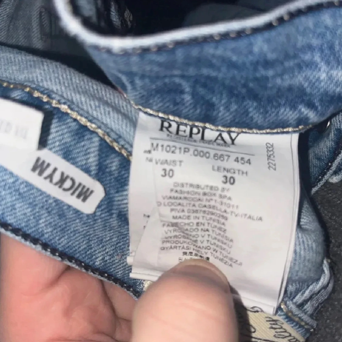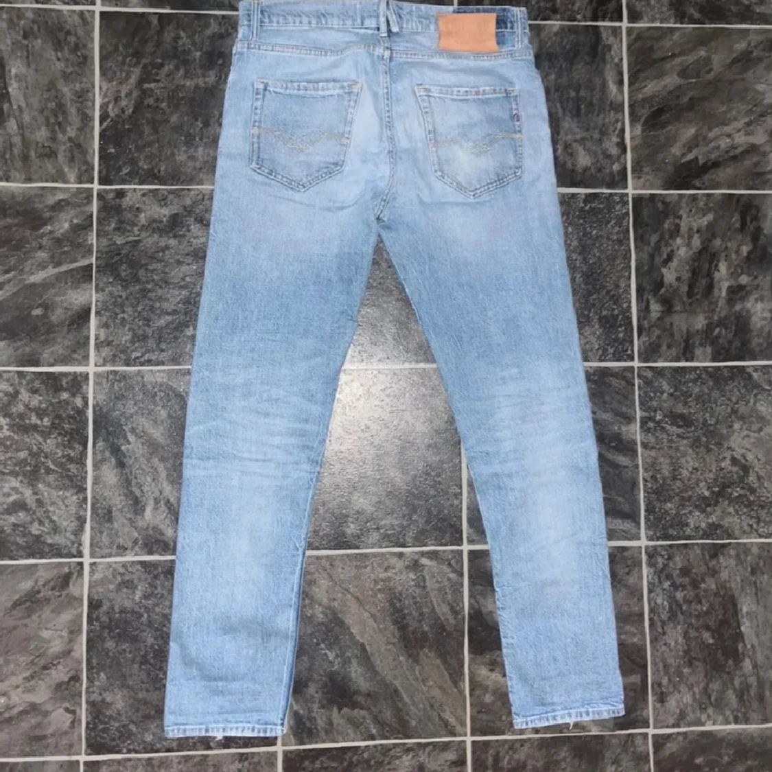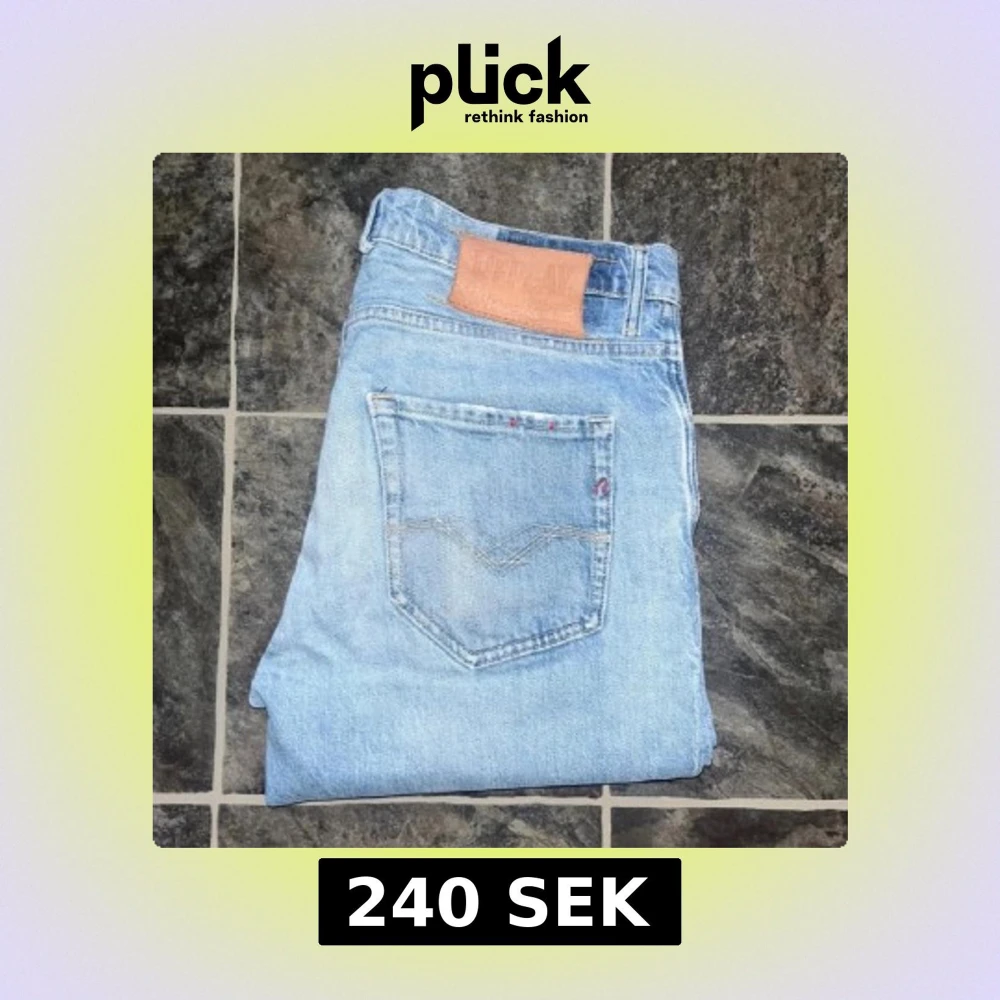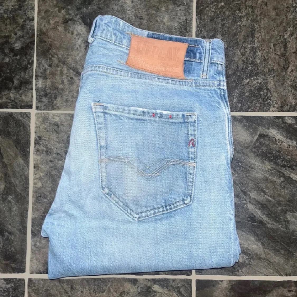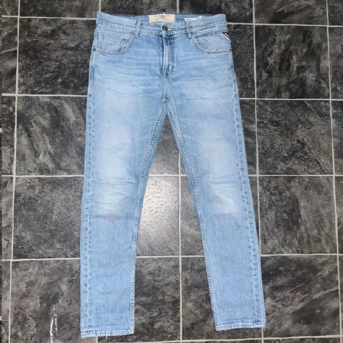 Säljer ett par ljusblå skinny jeans från Replay med klassisk femficksdesign och läderpatch bak. Jeansen har en smal passform och är tillverkade i jeansmaterial med snygga slitningar framtill. Midja 41cm, längd 98cm. JAG SKICKAR EJ FLER BILDER NÄR JAG BÄR JEANSEN! för storleksguide hänvisar jag till måtten och för bättre inblick i passformen rekommenderar jag att googla på modellnamnet. Jeansen kan vara uppsydda utan att jag noterat det så kolla måtten noggrant :) s4