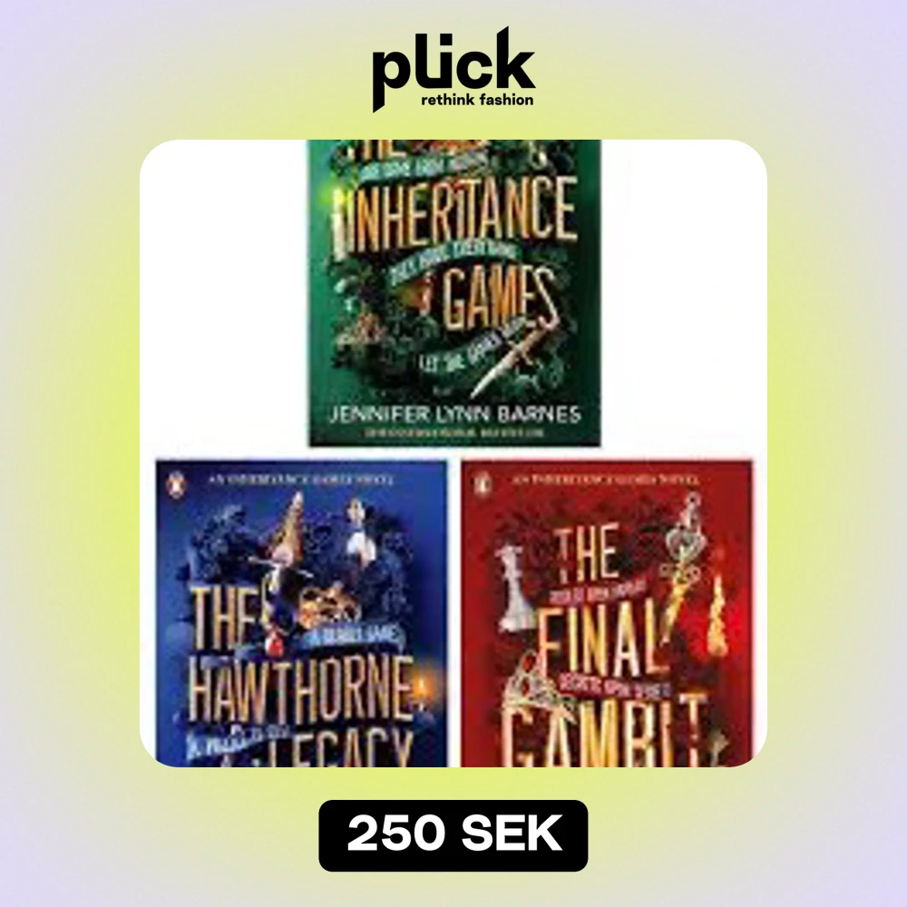 Säljer en spännande trilogi av Jennifer Lynn Barnes: 'The Inheritance Games', 'The Hawthorne Legacy' och 'The Final Gambit'. Böckerna är på engelska. De är endast lästa en gång och har inga tecken på användning. Super bra och rekommenderar starkt!!! Ny pris är 110kr st