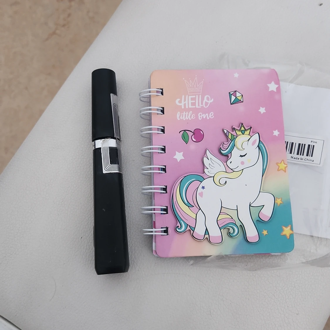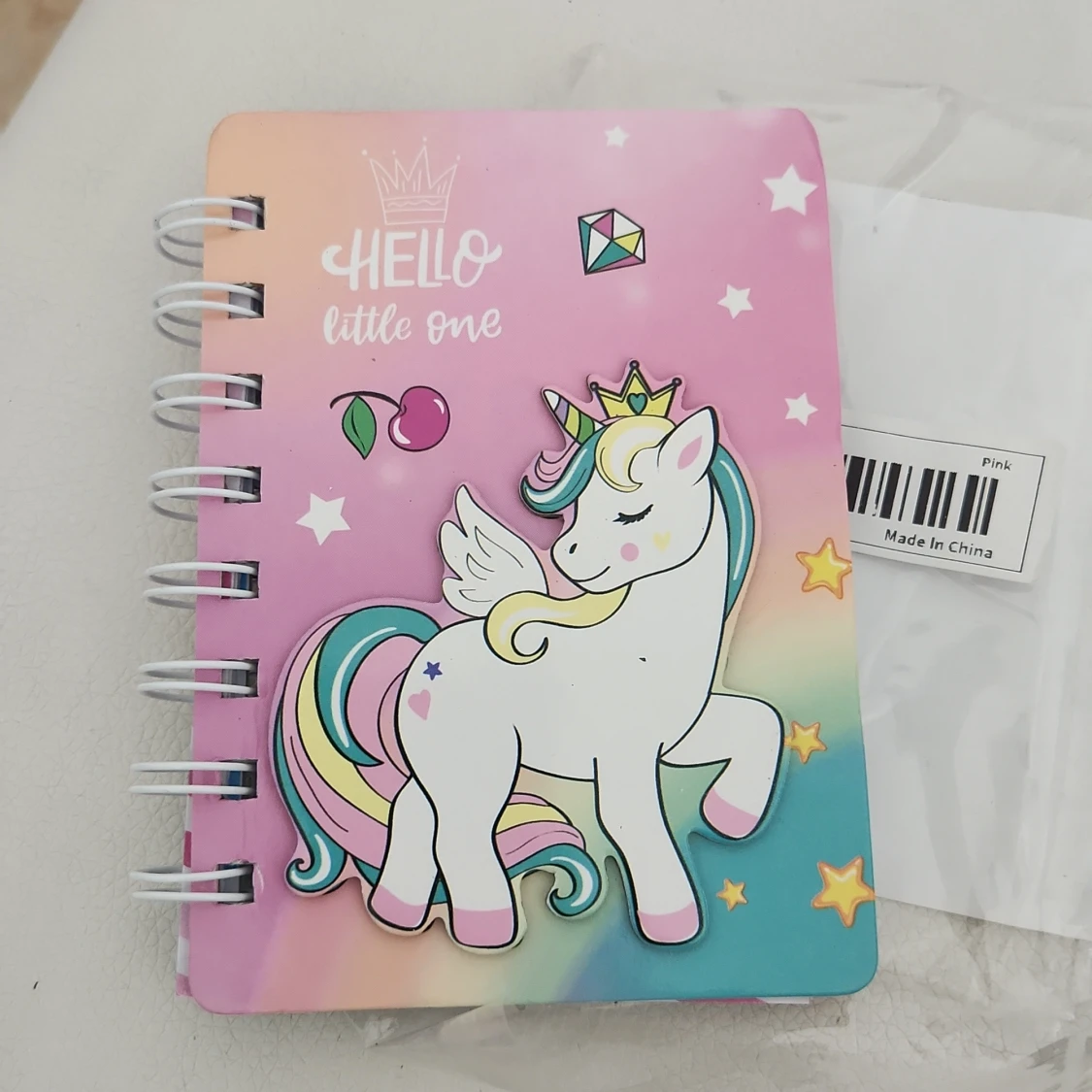 Söt anteckningsbok med spiralbindning och ett färgglatt enhörningsmotiv på omslaget. Perfekt för att skriva ner dina tankar, idéer eller drömmar. Smidig storlek som passar i väskan – gör din vardag lite mer magisk!