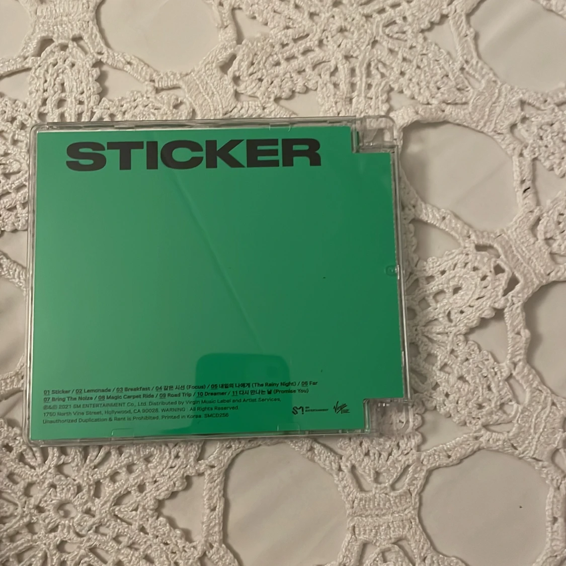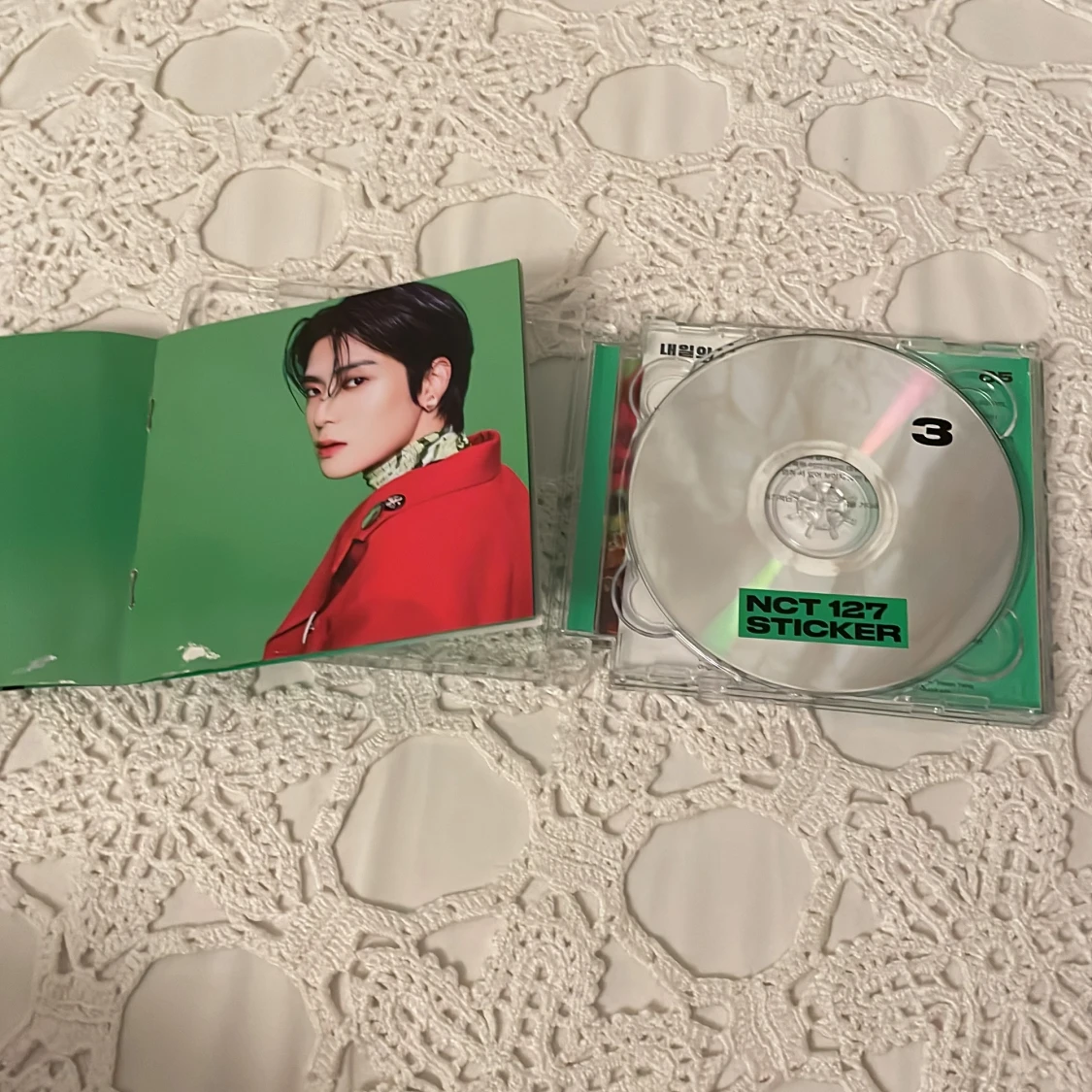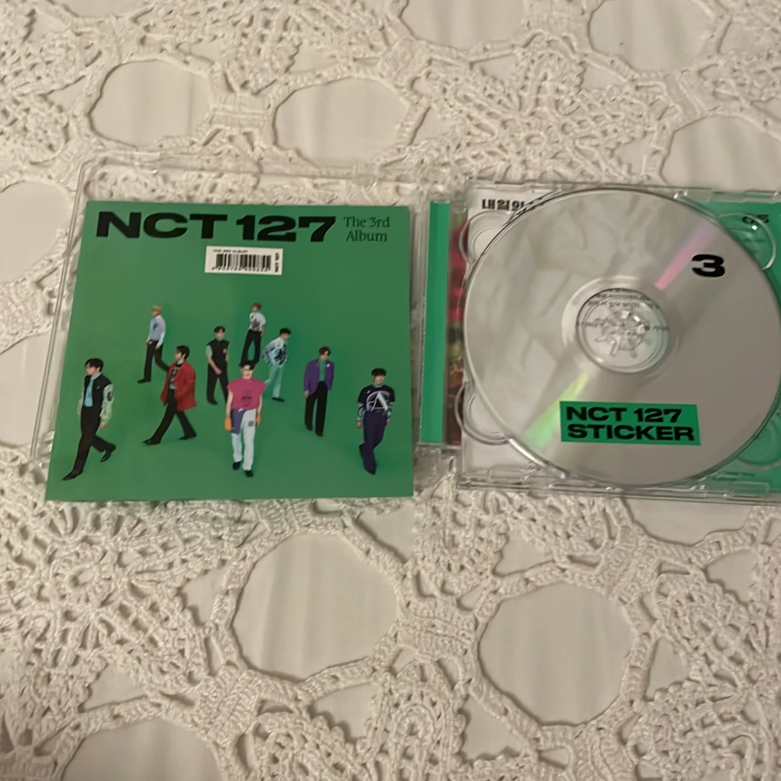 Säljer NCT 127:s tredje album 'Sticker'. CD:n kommer i ett grönt fodral med en booklet som har bilder på medlemmarna. Perfekt för fans av K-pop och NCT 127! Skivan är i bra skick och innehåller flera populära låtar.