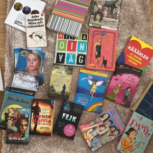 Säljer alla böckerna, de är i ny skick. Fejk - E. Lockhart, Ljuset vi inte ser - Anthony Doerr, Främlingen- Norah Mcclintock, Emmy- nu med utväxt- Matte finderup, Inte bara kompisar- Rosie Rushton, Sabrina- frestelser och farliga former - Diana G. Gallagher, En dejt med bett - Franziska Gehm.