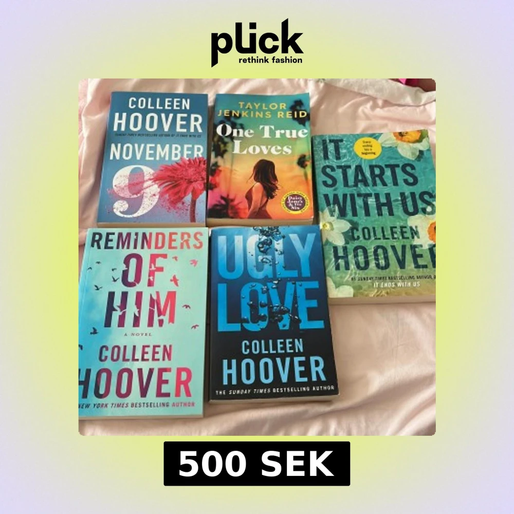 Fem populära böcker perfekta för unga vuxna! Färgstarka omslag och moderna titlar av Colleen Hoover och Taylor Jenkins Reid. Perfekt för dig som gillar känslor, relationer och starka berättelser. Skapa din egen samling av samtida romaner! 100kr st