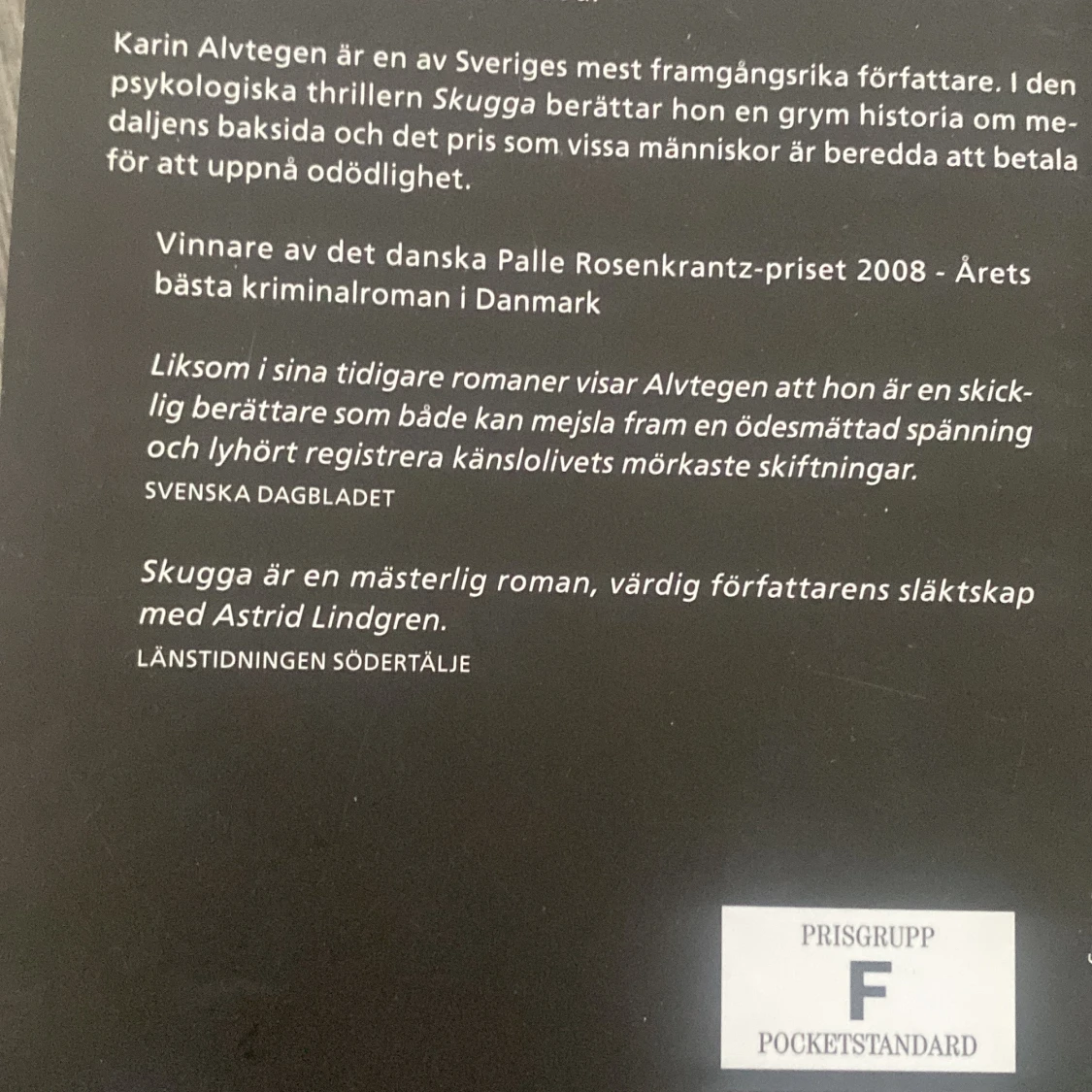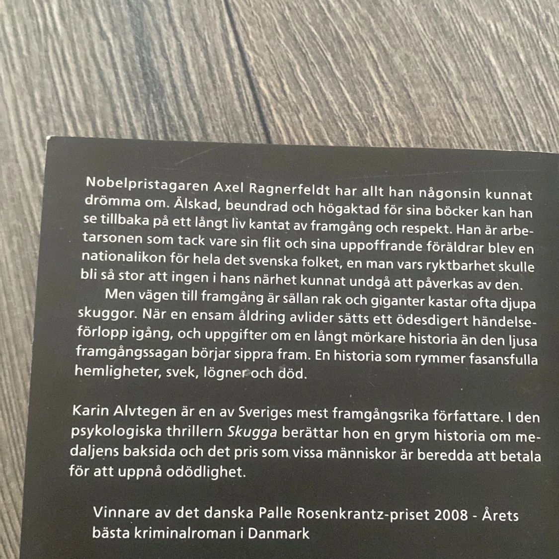 En psykologisk thriller om framgång, mörka hemligheter och svek. Skugga är en prisbelönt roman som lockar med spänning, känslor och oväntade vändningar. Perfekt för dig som gillar djupa berättelser och vill ha en bok du inte kan släppa.