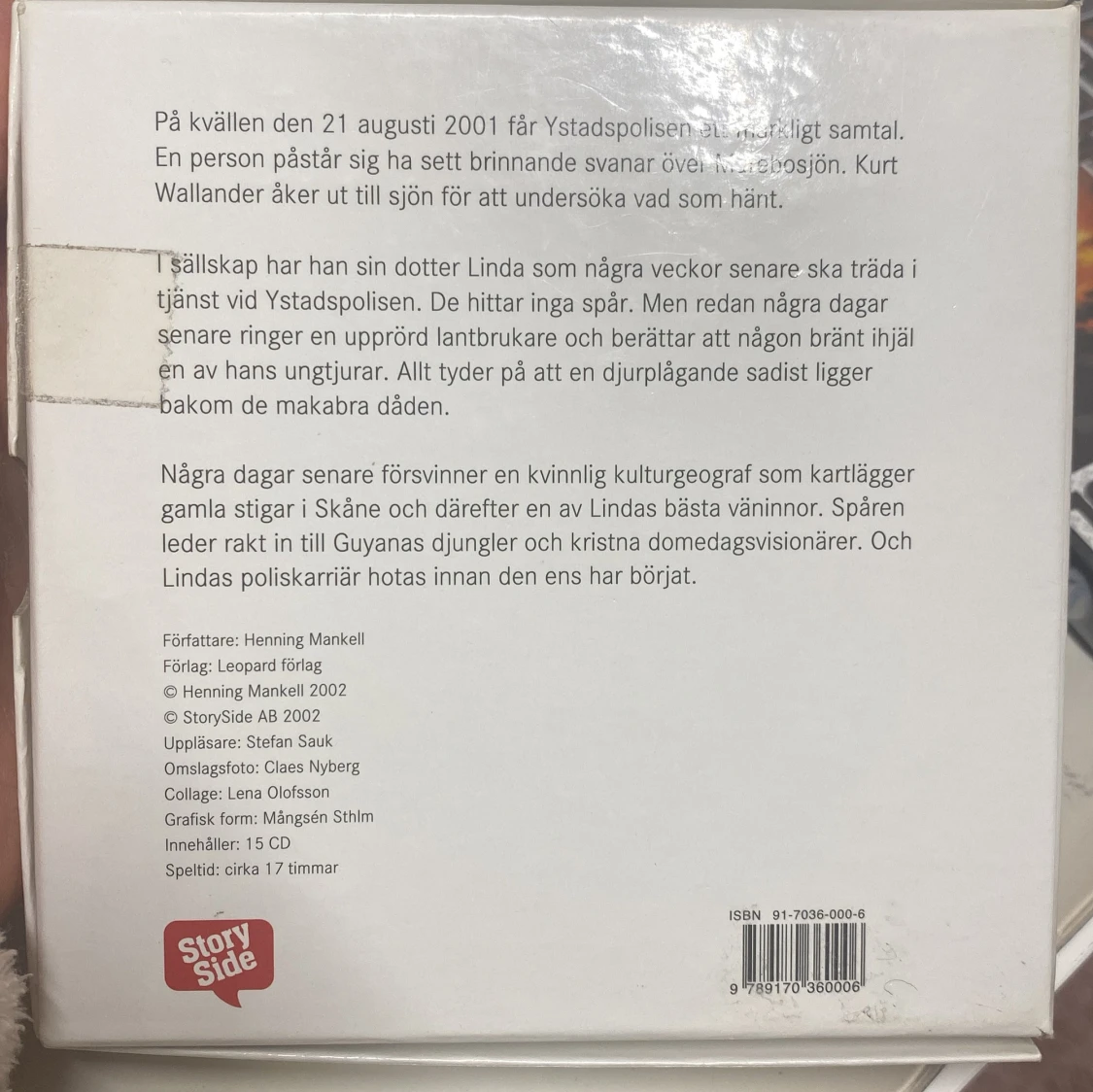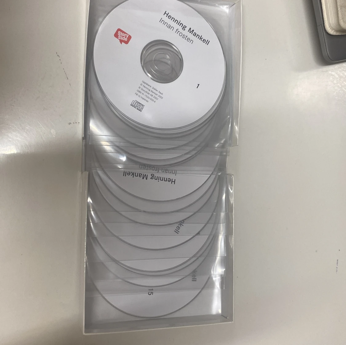 Säljer ljudbok 'Innan frosten' av Henning Mankell, uppläst av Stefan Sauk. Denna spännande Wallander-deckare handlar om mystiska händelser i Ystad. Boxen innehåller 15 CD-skivor i ett plastfodral. Perfekt för dig som älskar kriminalromaner och vill lyssna på en fängslande berättelse.
