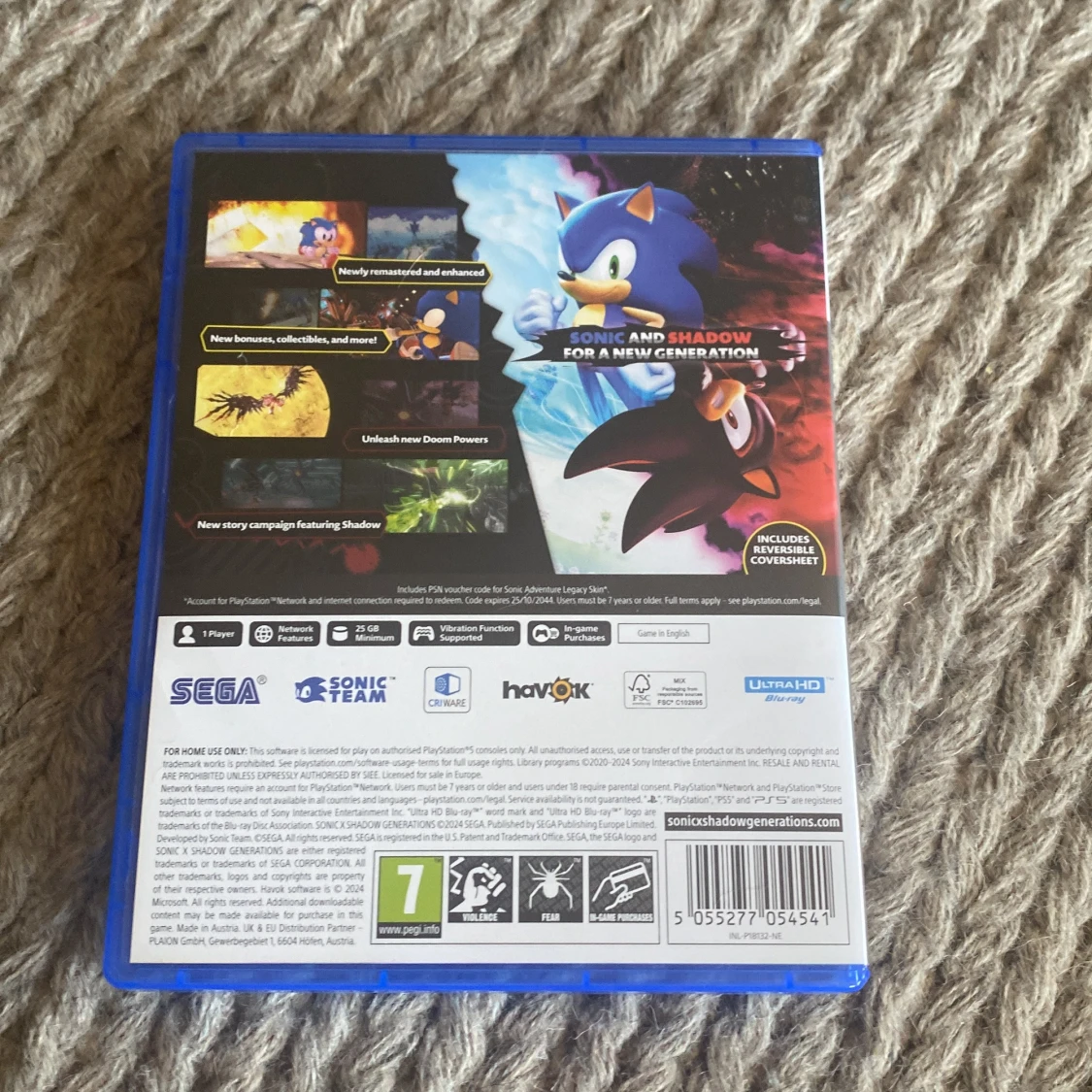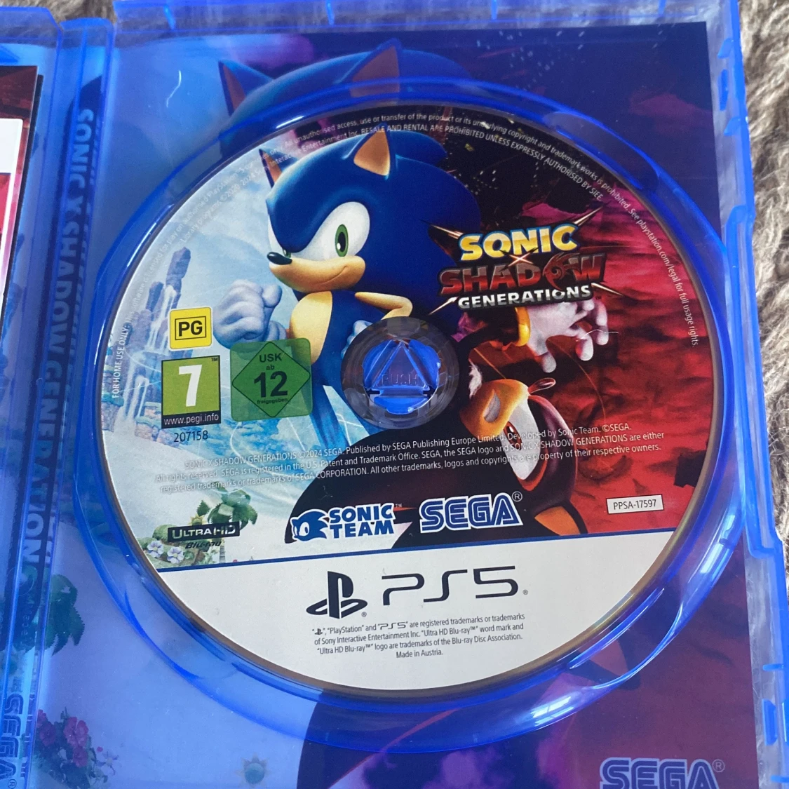 Sonic x Shadow Generations Day One Edition till PlayStation 5. Inkluderar exklusiv journal (Gerald Robotnik's Journal) och spel på skiva. Omslaget har färgstark design med Sonic och Shadow. PEGI 7. Perfekt för fans av action och plattformsspel. Säljer då det inte används, hoppas det får en ny ägare snart.