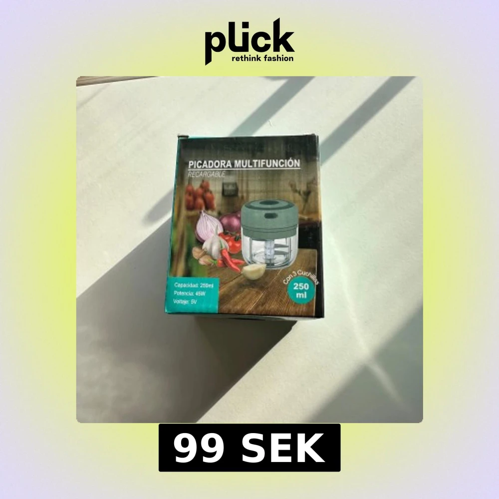 Säljer en praktisk och mångsidig picadora multifunción som är uppladdningsbar. Den har en kapacitet på 250 ml och en effekt på 45W. Perfekt för att hacka grönsaker och andra ingredienser snabbt och enkelt. Finns i flera färger.