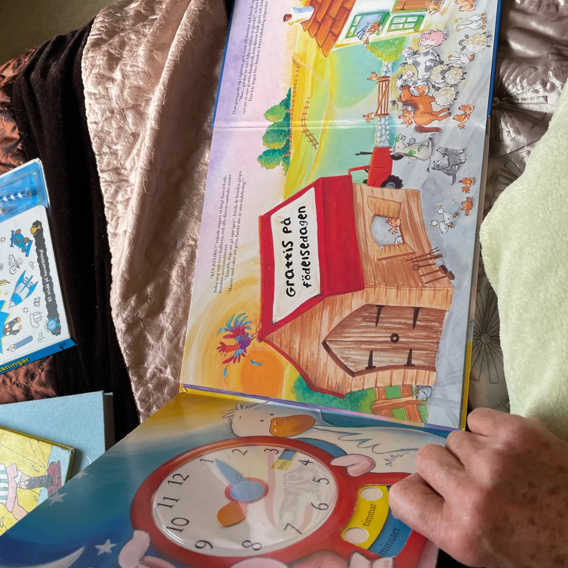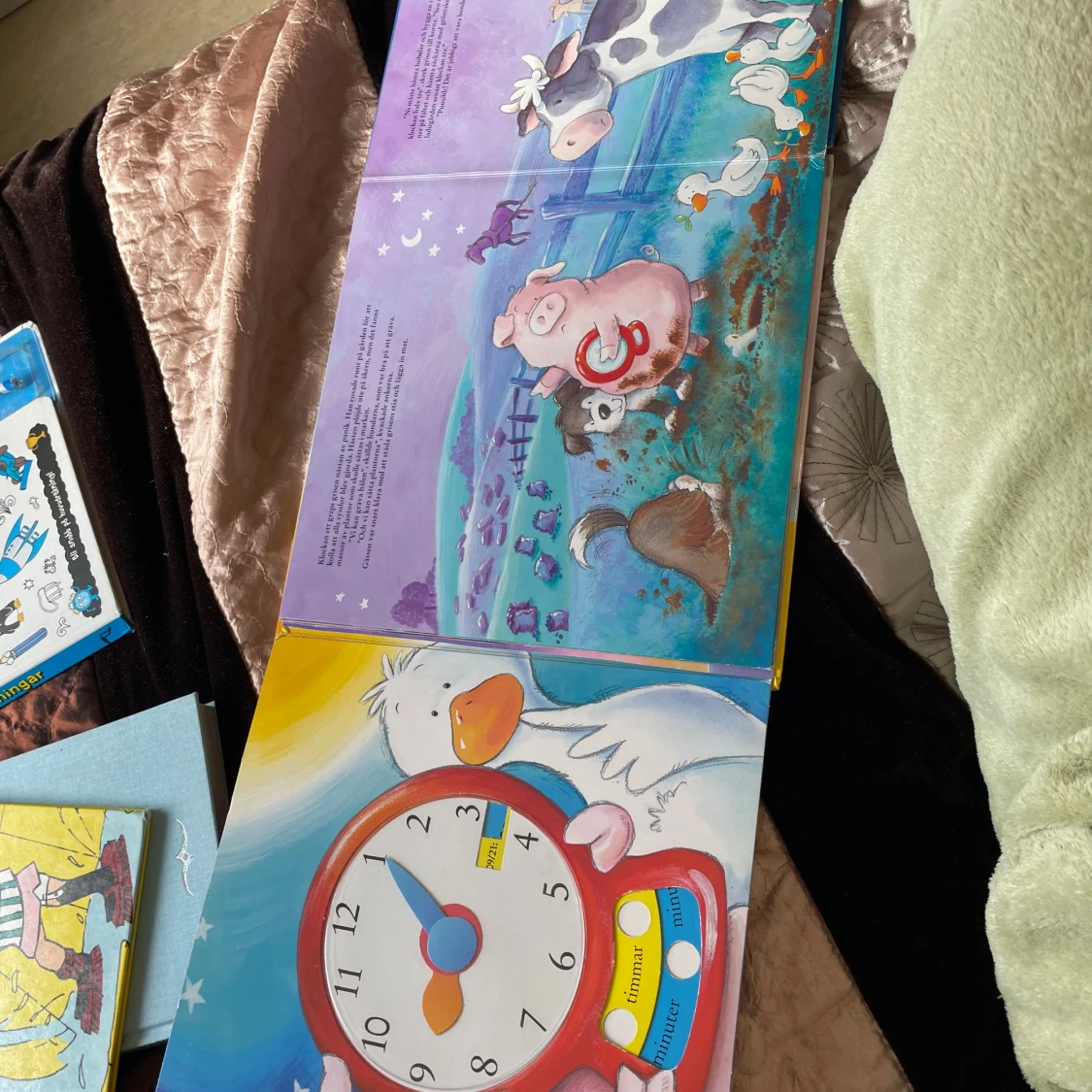 En färgglad och interaktiv bok där du lär dig klockan tillsammans med djuren på bondgården! Vrid på visarna och hjälp djuren att hinna med alla sysslor innan tiden är ute. Perfekt för dig som vill ha kul och samtidigt lära dig något nytt.