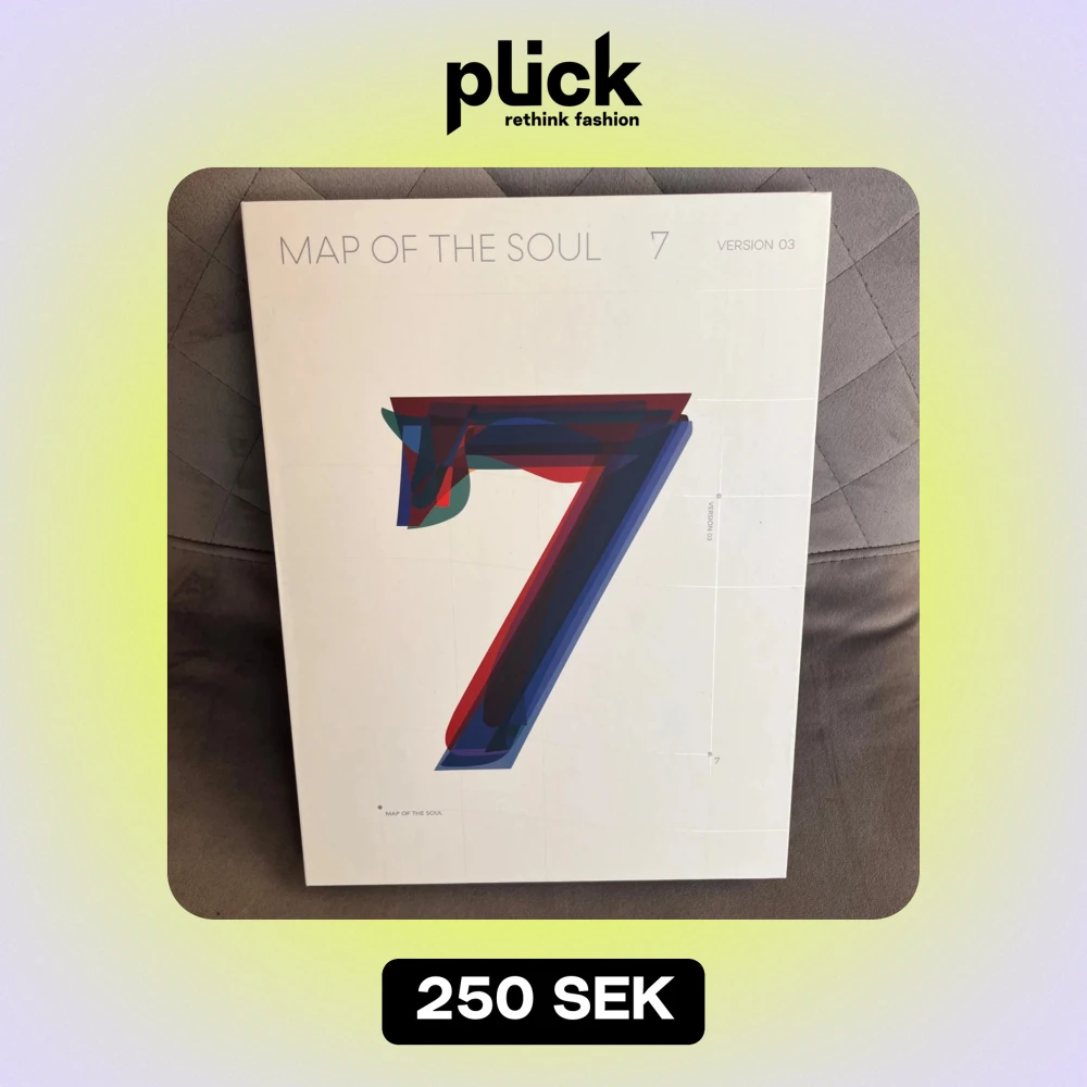 Säljer albumet 'Map of the Soul: 7' av BTS, version 03. Innehåller en CD, fotobok, fotokort och andra samlarobjekt. Perfekt för fans av K-pop och BTS! Albumet har en stilren vit design med en stor färgglad siffra 7 på framsidan. Albumet är i nytt skick.