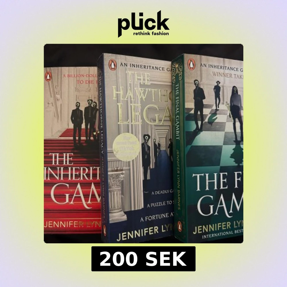 Säljer en trilogi av Jennifer Lynn Barnes: 'The Inheritance Games', 'The Hawthorne Legacy' och 'The Final Gambit'. Böckerna har färgstarka omslag i rött, blått och grönt med siluetter och mystiska detaljer. Perfekt för dig som gillar spänning och mysterier.