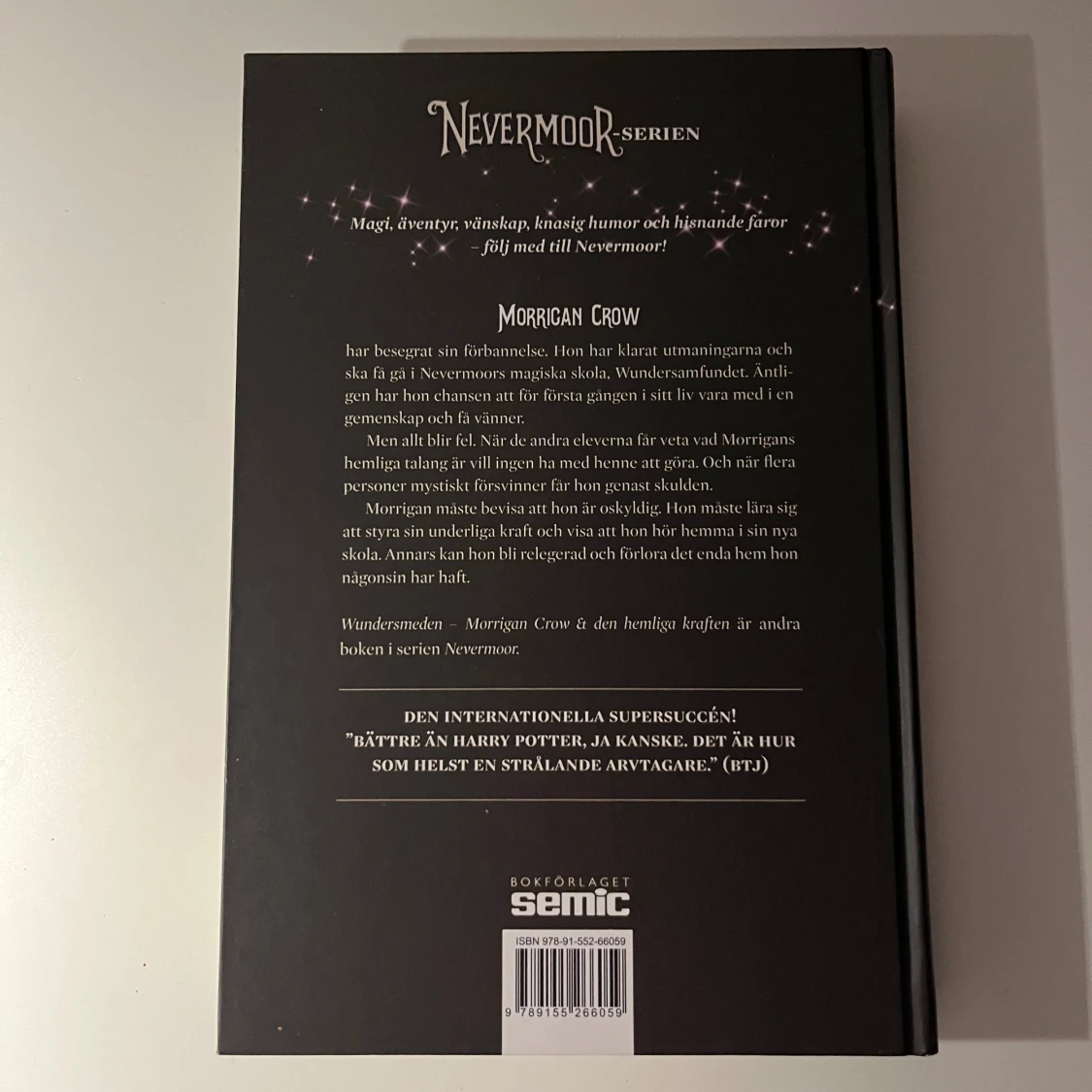Säljer den första och andra boken från Nevermoor-serien av Jessica Townsend. Den första är en pocketbok och den andra är en bok. Båda är i bra skick.